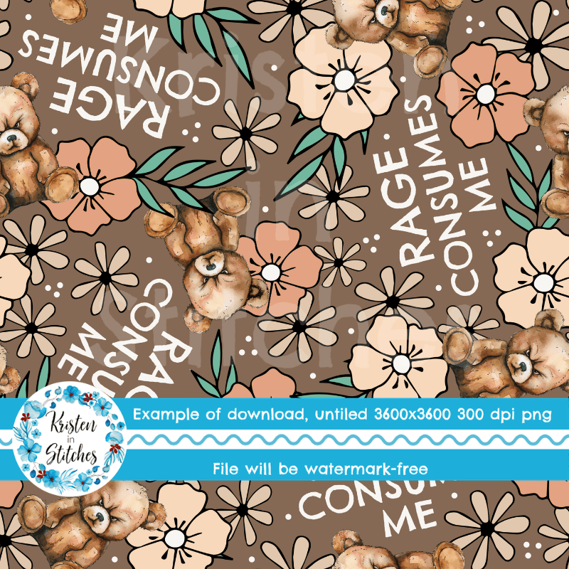 Rage Consumes Me Seamless Pattern, Sarcastic Grouchy Bears