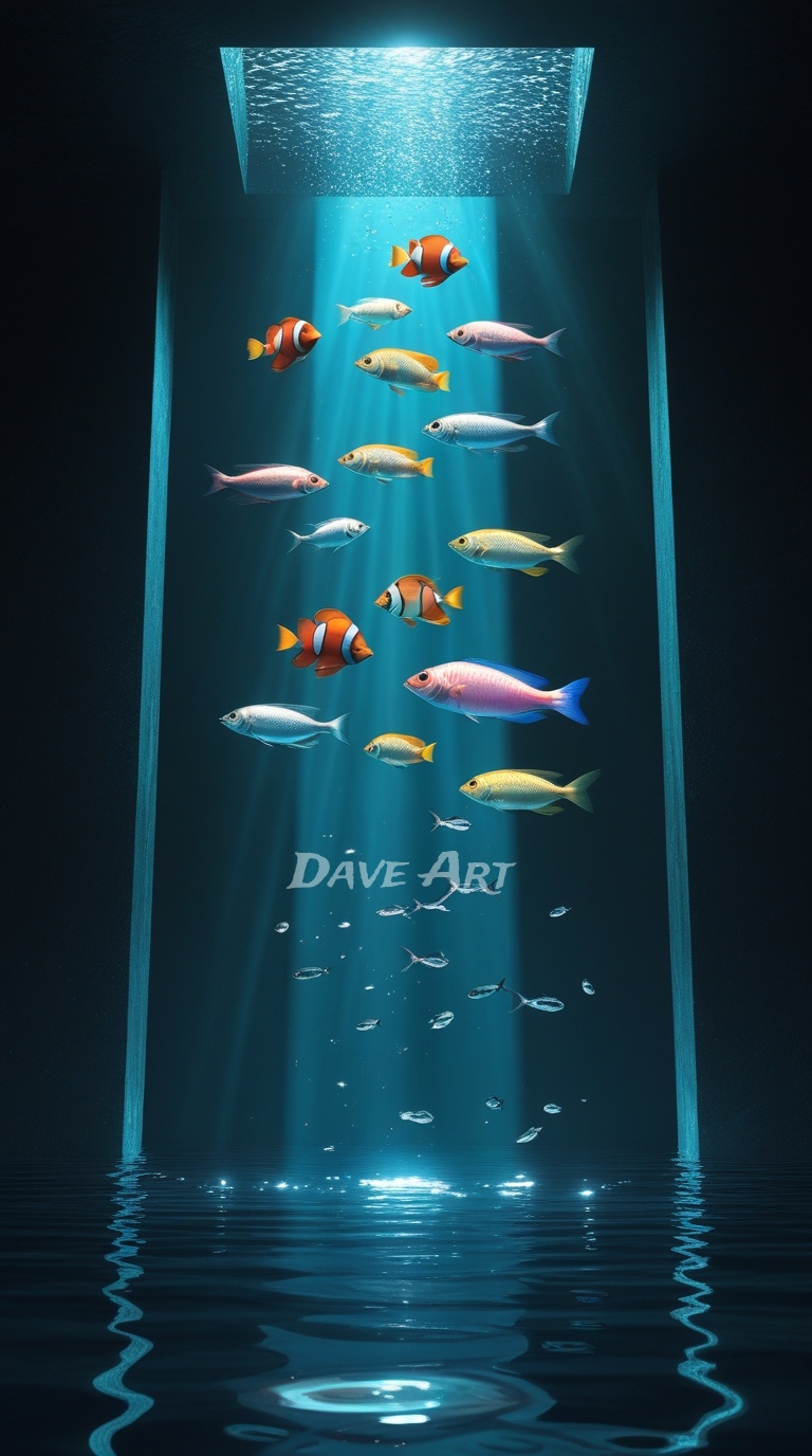 - Surreal underwater light & fish scene