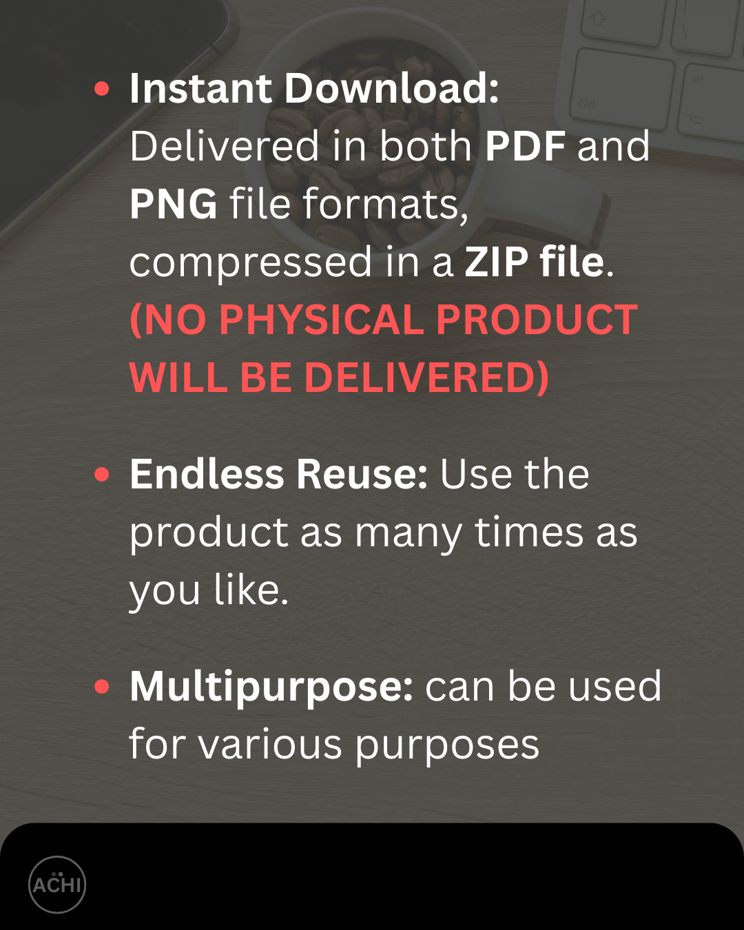 Instant Download – Delivered in both PDF and PNG file formats, compressed in a ZIP file. (NO PHYSICAL PRODUCT WILL BE DELIVERED)