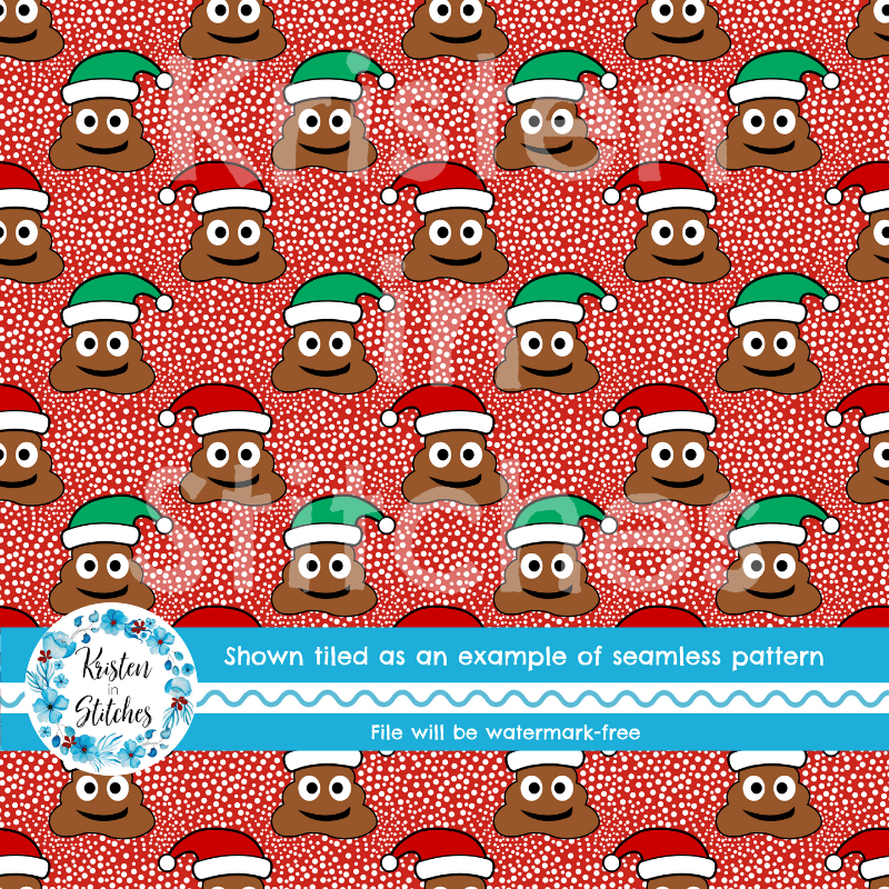 Merry Shitmas Christmas Poop Emojis Santa Hats Sarcastic Christmas Seamless Pattern