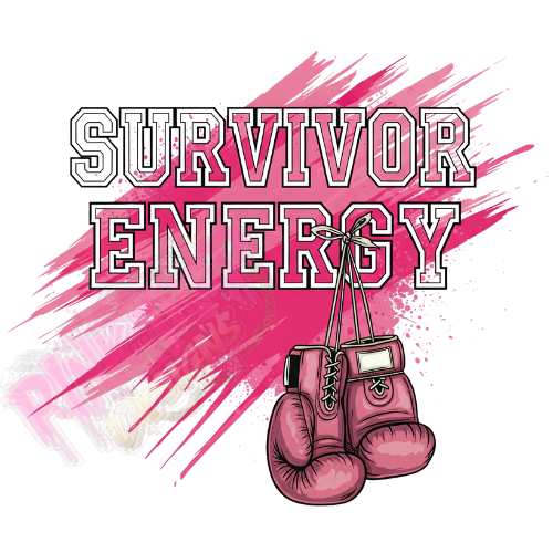 ✨ Survivor Energy – varsity-style with boxing gloves + ribbon