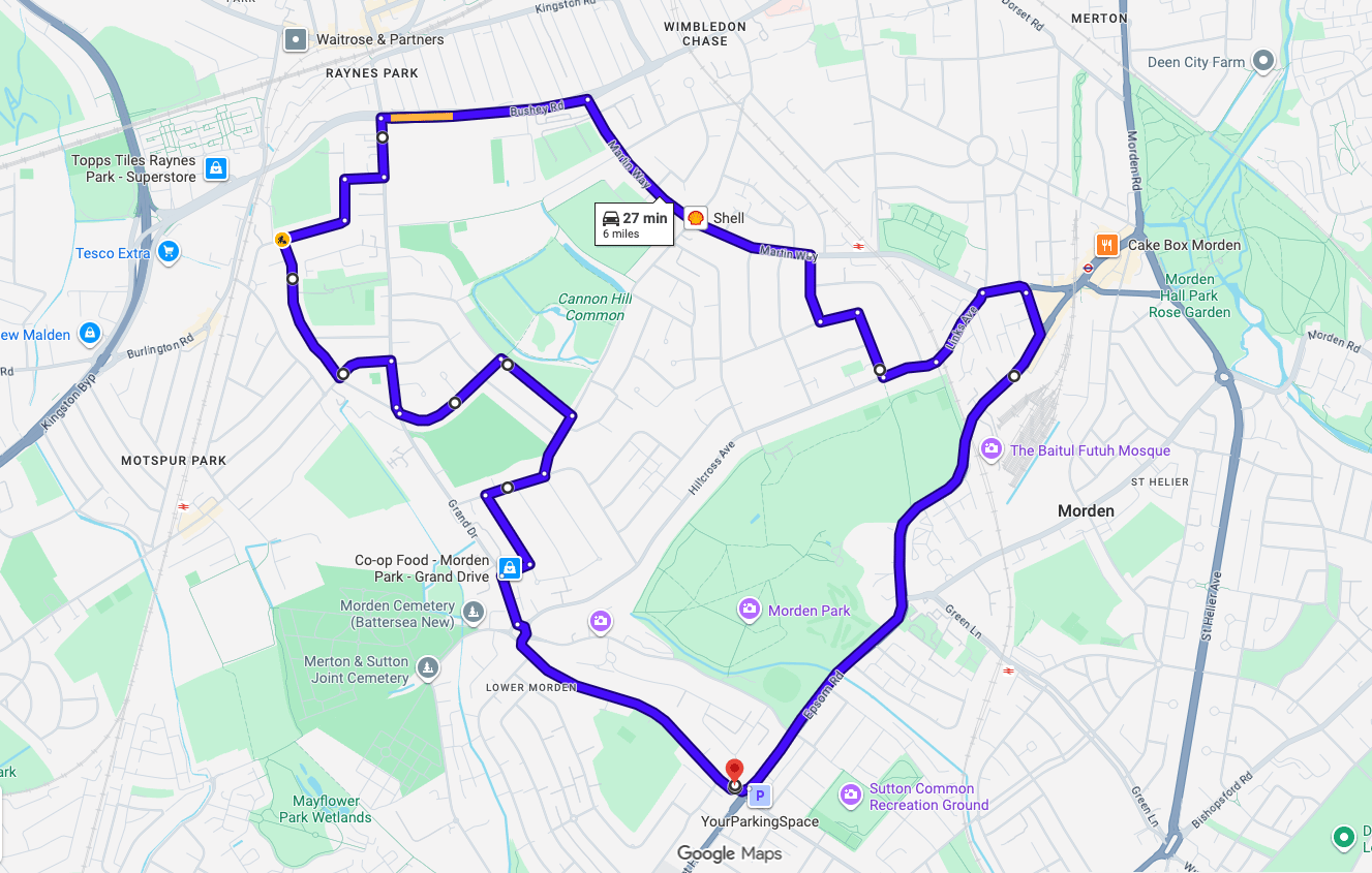 Practise real driving test routes in Morden (London) before your exam – open directly in Google Maps