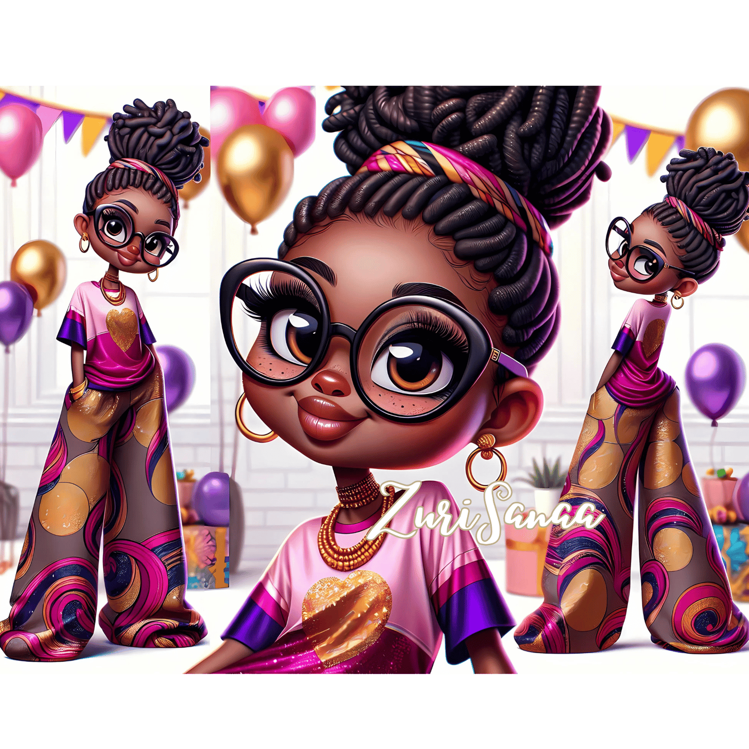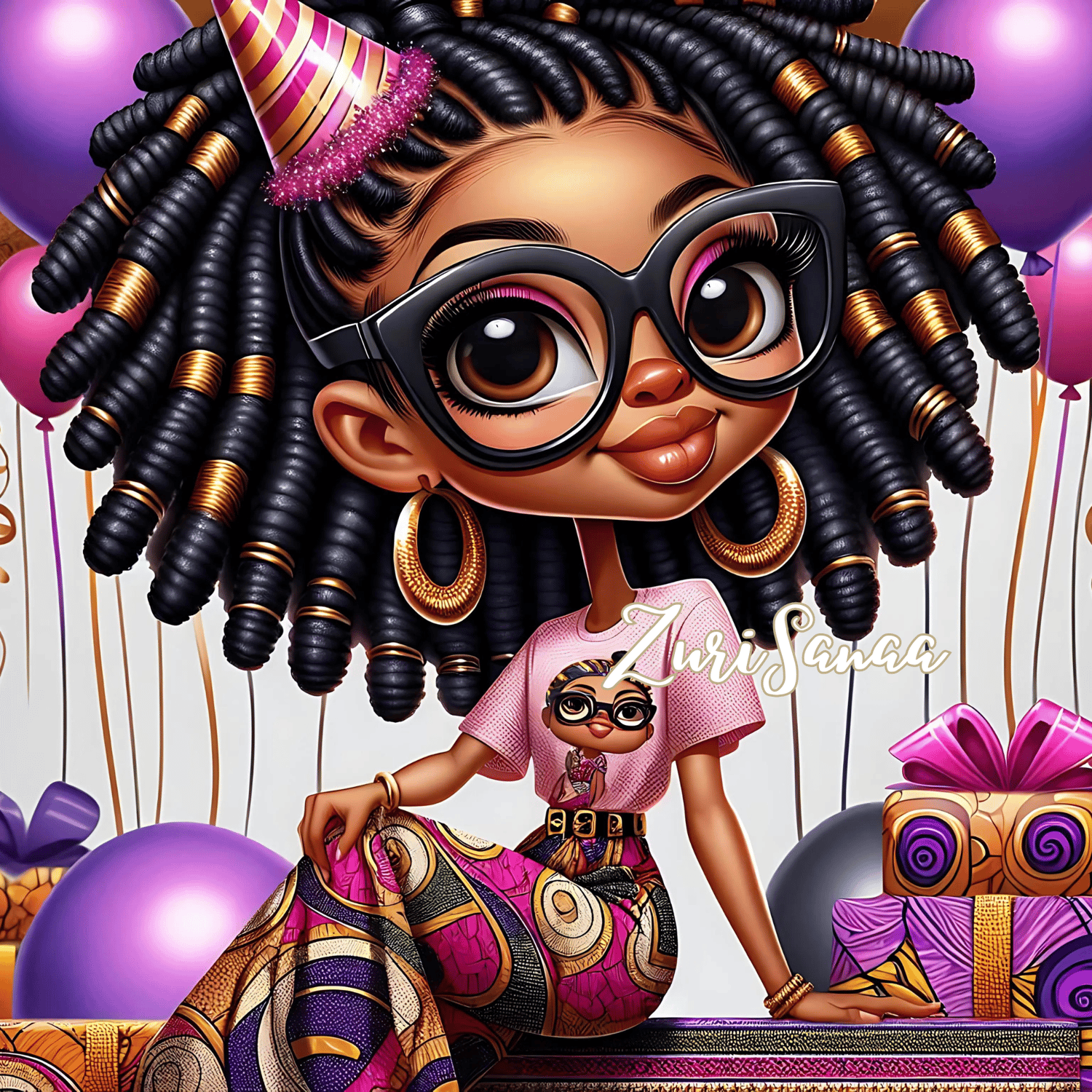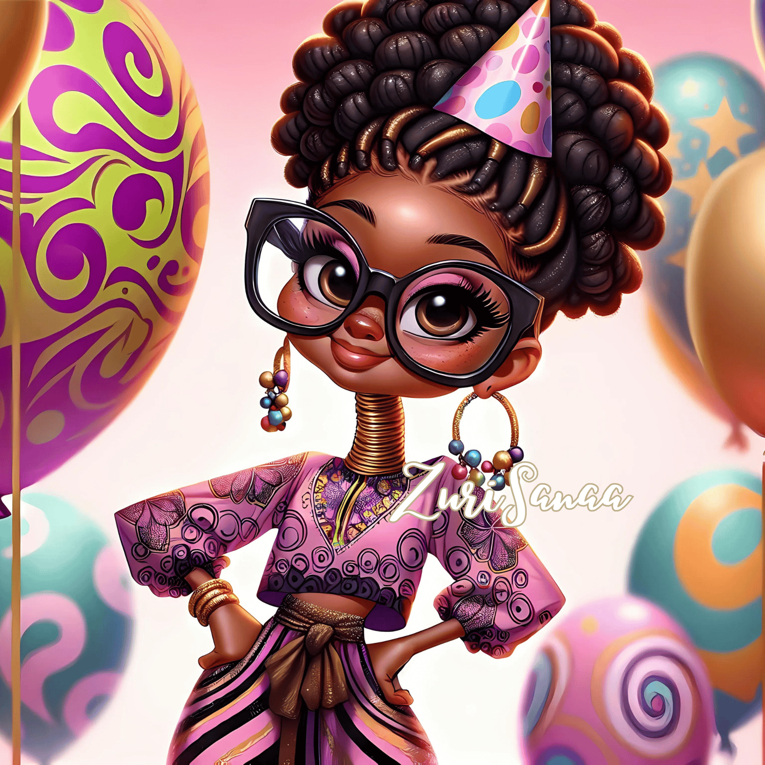 Party Queen Vibes: Fun African American Character PNG Bundle (Bonus Image Included!)"