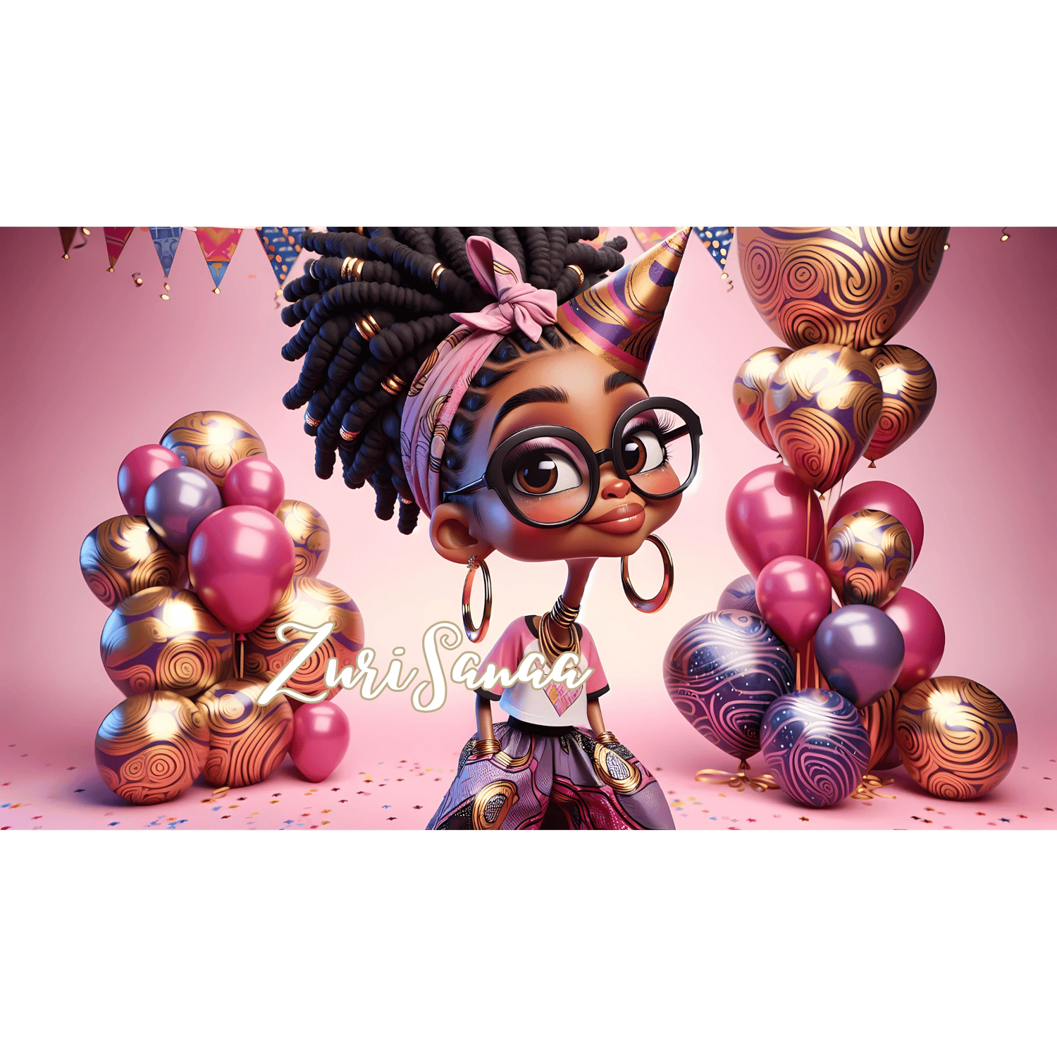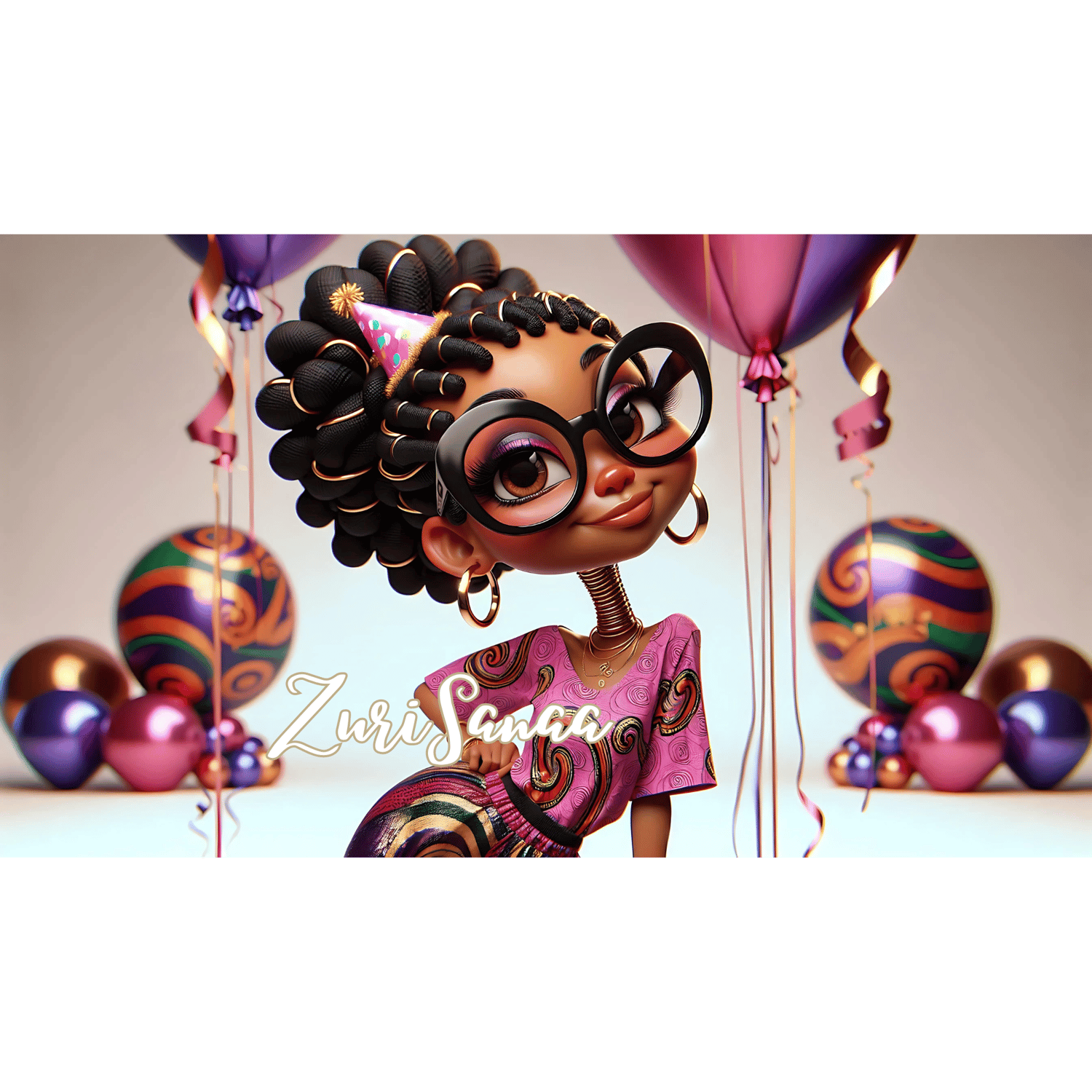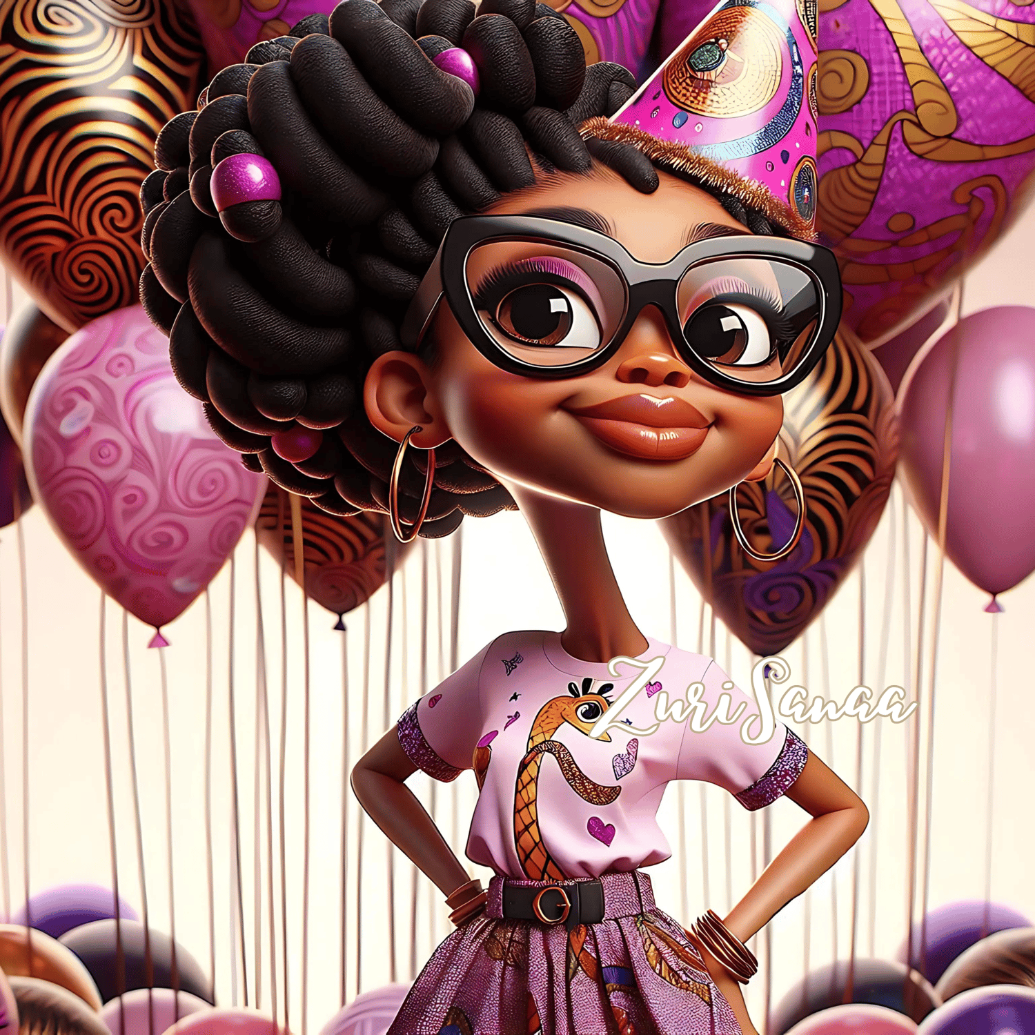 Party Queen Vibes: Fun African American Character PNG Bundle (Bonus Image Included!)"