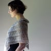 Shore is a triangular lace shawl worked from side-to-side that features a new take on an old lace pattern. Elegant in its simplicity, this shawl pattern will show off your fuzzy, hand-painted, delicate skeins in a relaxing, rhythmic stitch pattern. The side-to-side construction means that you can maximize your yardage and the knitting seems to get faster as you decrease toward the end.