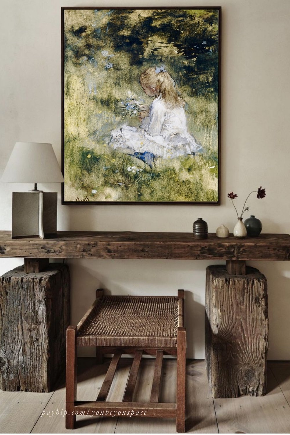Jacob Maris’s A Girl with Flowers on the Grass (1878) is a quiet celebration of childhood and nature. Restored from its original 19th-century form, this artwork captures soft natural light, gentle color, and the painterly calm that defines the Hague School. Perfect for serene interiors, warm vintage rooms, and nostalgic art lovers.