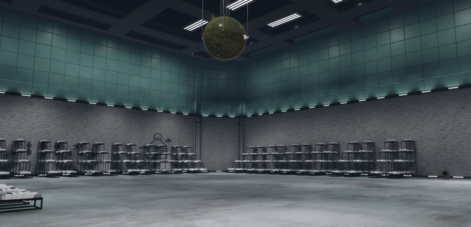 Enter the iconic Squid Games lobby — a clean, eerie staging area designed to replicate the hit series. Featuring stacked beds, cold industrial walls, and towering ceilings, it’s the perfect starting zone for your minigames, roleplay, or survival rounds.