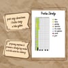 Svaka stranica za dnevnik je dizajnirana da ti omogući da koristiš različite boje za praćenje različitih aspekata svog života, pomažući ti da vizualizuješ svoj napredak i razmišljaš o svojim iskustvima.