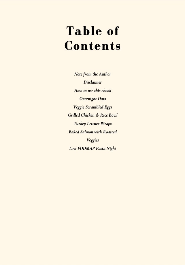 Struggling with IBS and not sure what to eat? This recipe book gives you 6 easy, delicious Low FODMAP meals (2 breakfasts + 4 lunches/dinners) that are safe for sensitive guts and dietitian-approved.