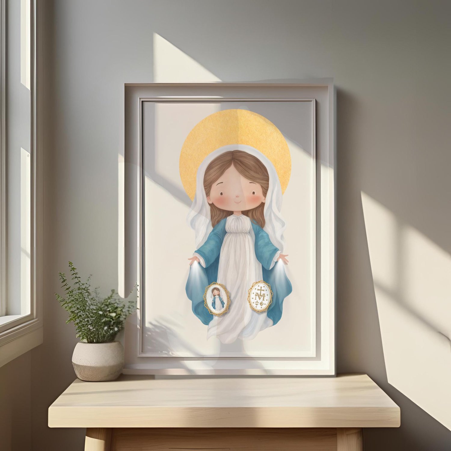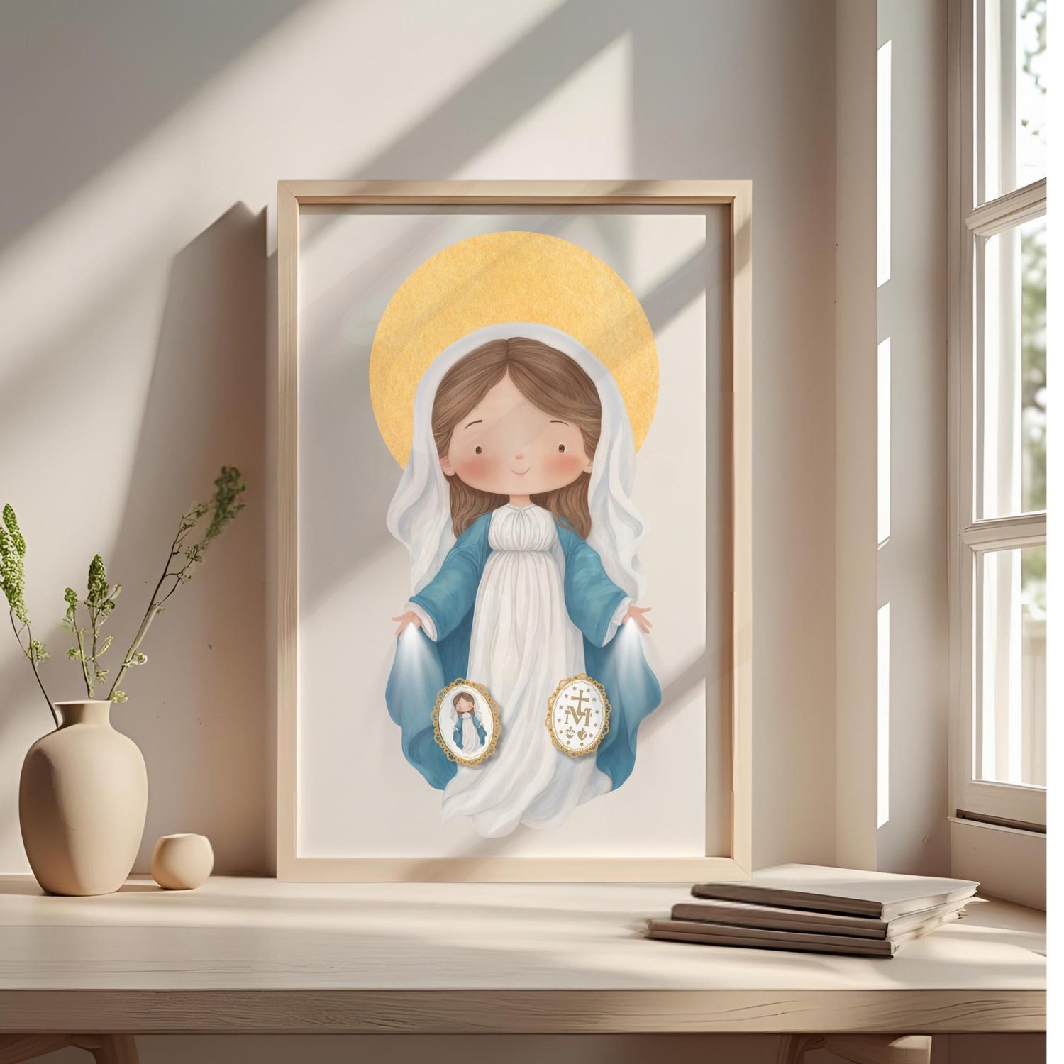 Celebra tu fe con esta hermosa ilustración digital en acuarela de la Virgen de la Medalla Milagrosa, también venerada como Nuestra Señora de las Gracias. Este set de descarga instantánea es perfecto para una variedad de proyectos creativos y devocionales, recordando las promesas y gracias de la Santísima Virgen María.¿Qué recibirás?**