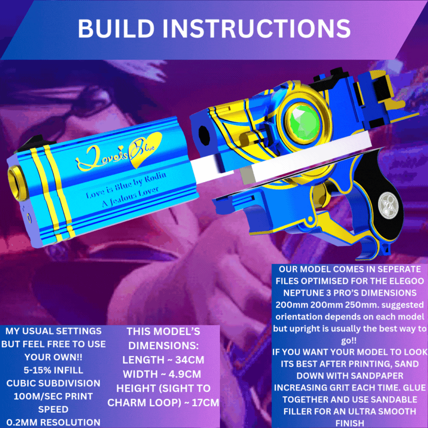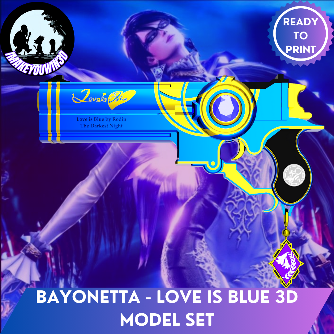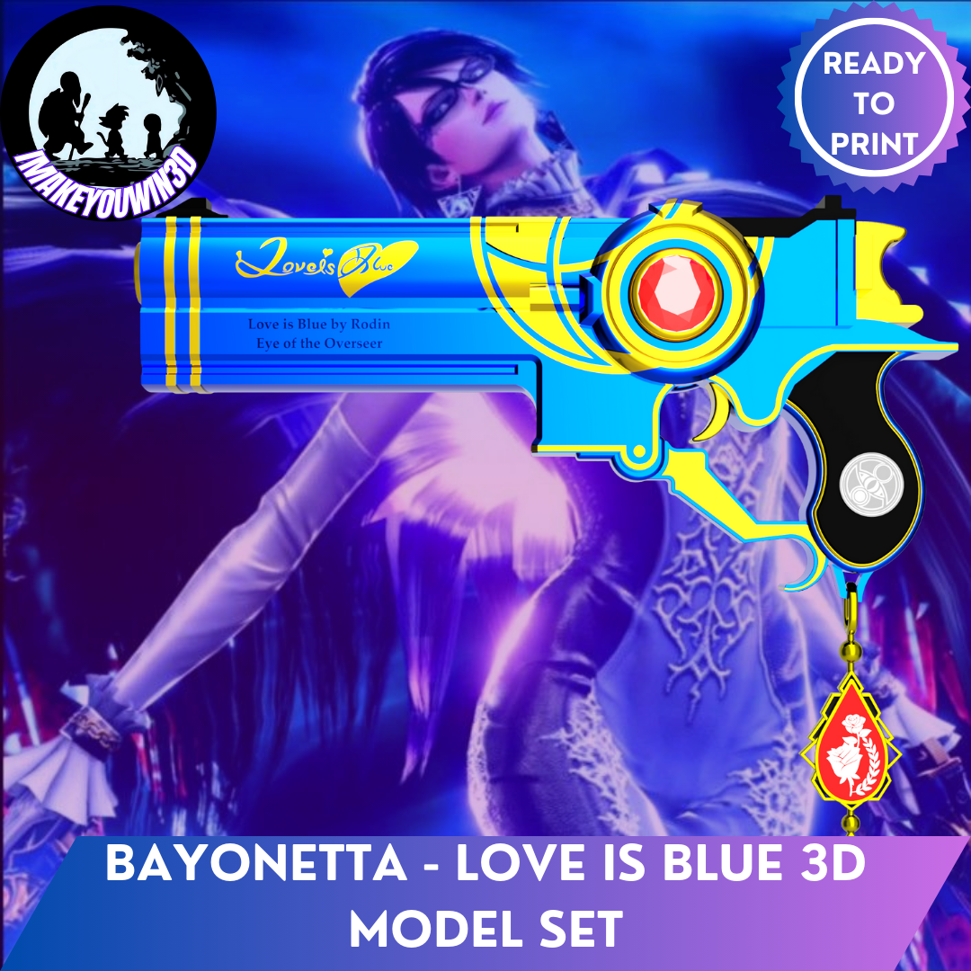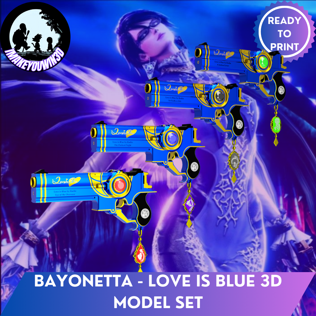 Step into the world of Bayonetta with Love Is Blue — the elegant, magical pistols wielded by the Umbra Witch in Bayonetta 2. This fan-made 3D model set includes all four pistols along with their matching summoning charms, giving fans the chance to bring this iconic weapon into reality.