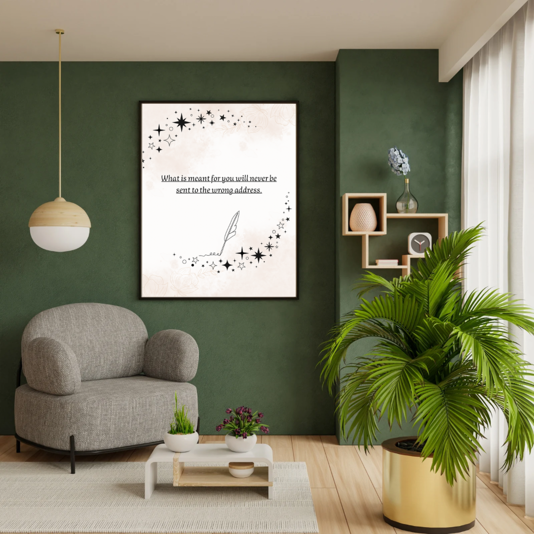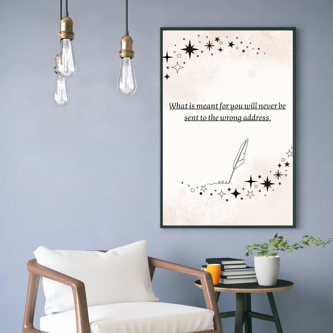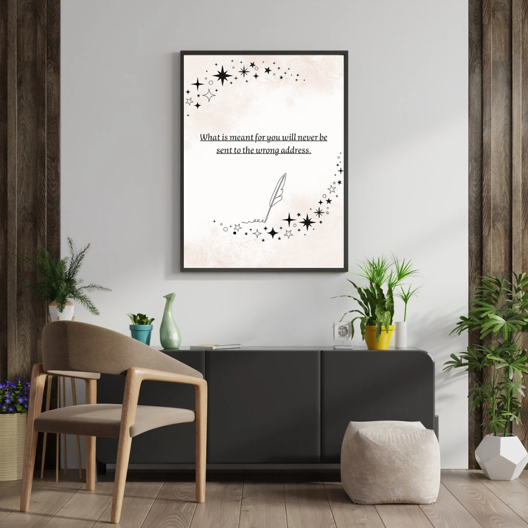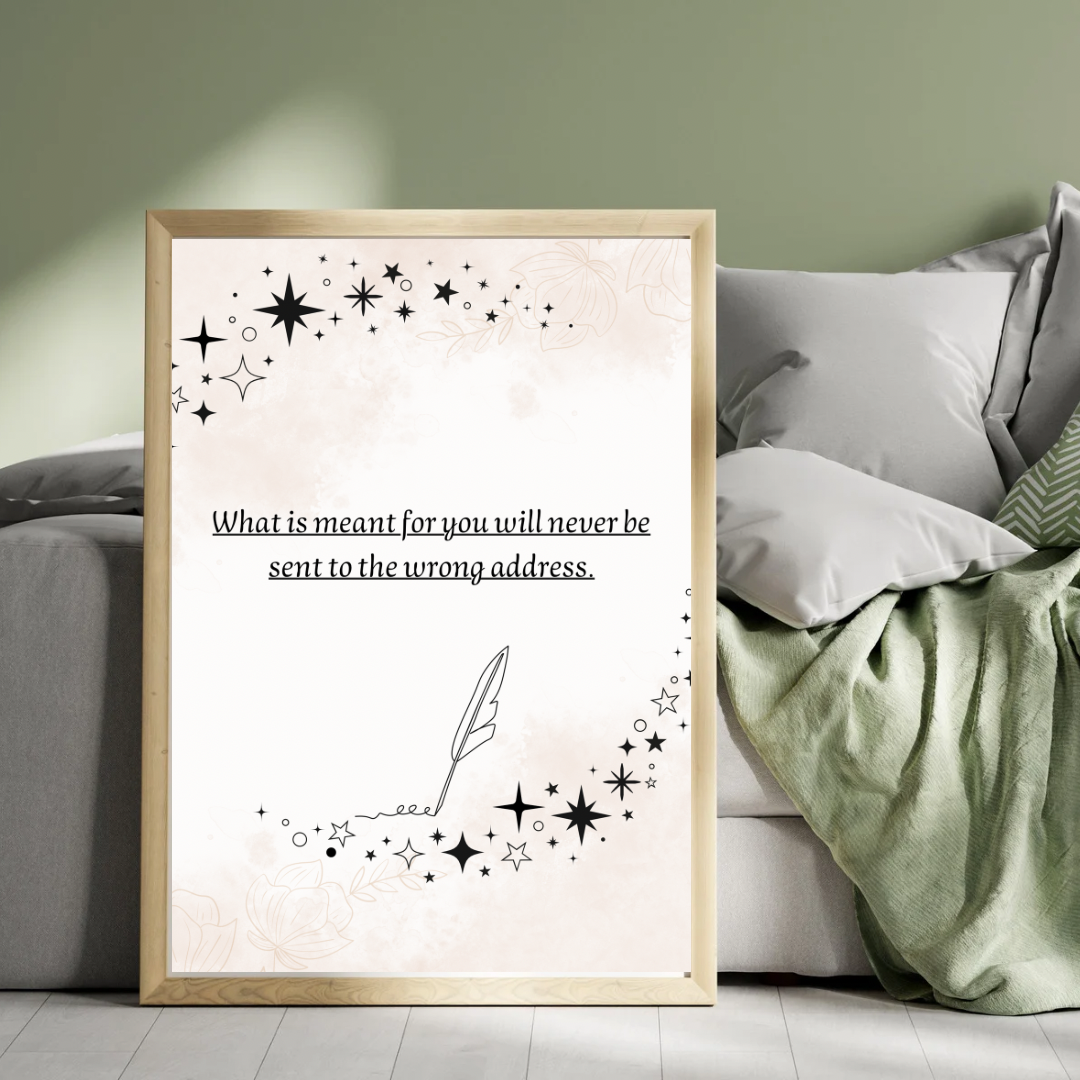Bring calm, clarity, and a touch of magic to your space with this printable minimalist wall art featuring the powerful affirmation: “What is meant for you will never be sent to the wrong address.”