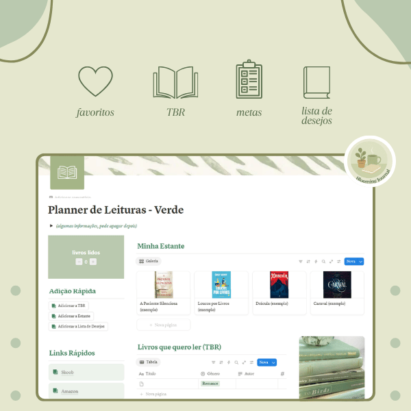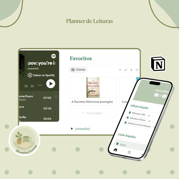 Acompanhe seus livros, metas e listas de leitura em um único espaço dentro do Notion, facilitando registrar leituras e manter tudo organizado ao longo do tempo!