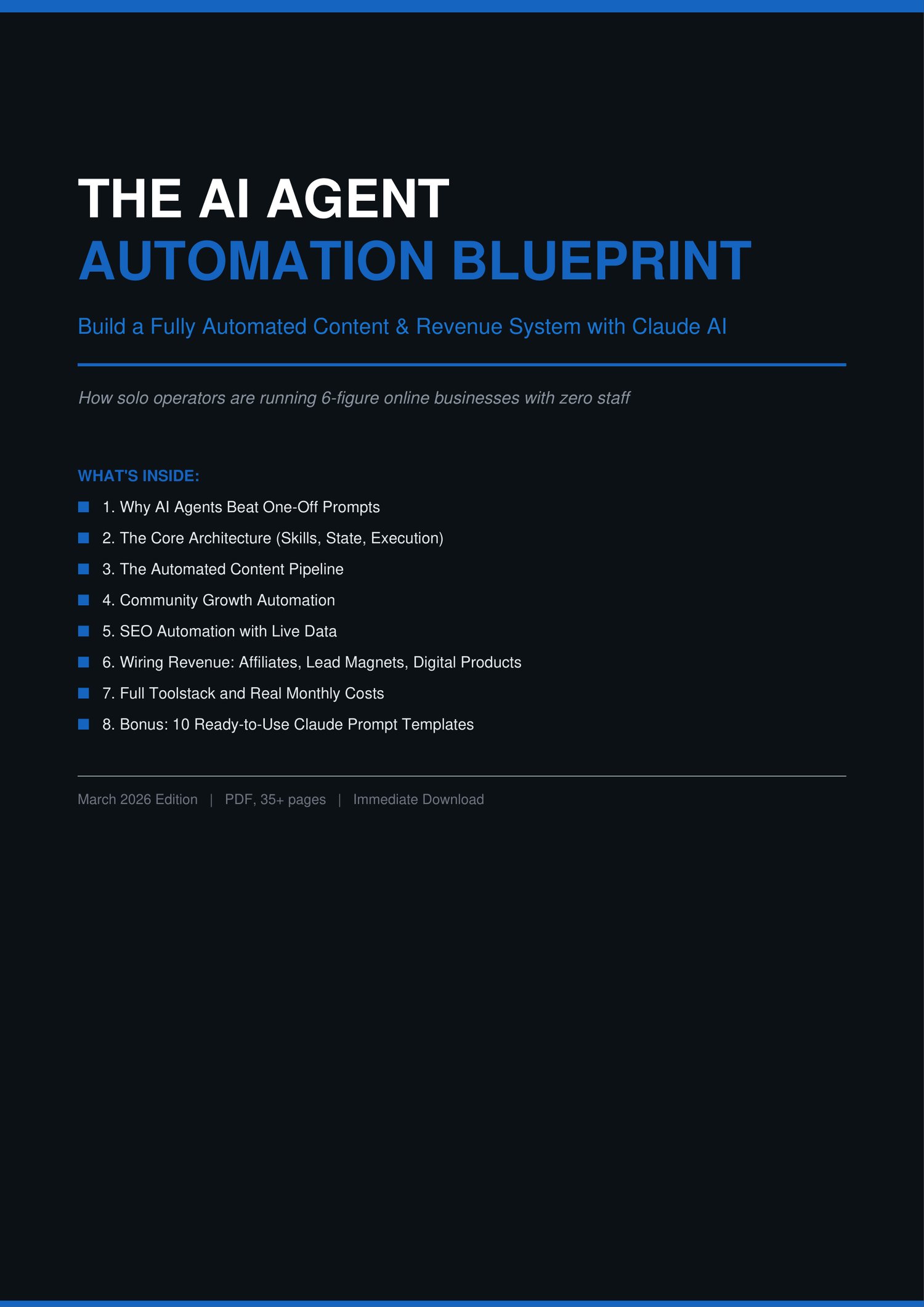Format: PDF, 35+ pages. Instant download. Built and documented by a solo operator running this system live. March 2026 edition.