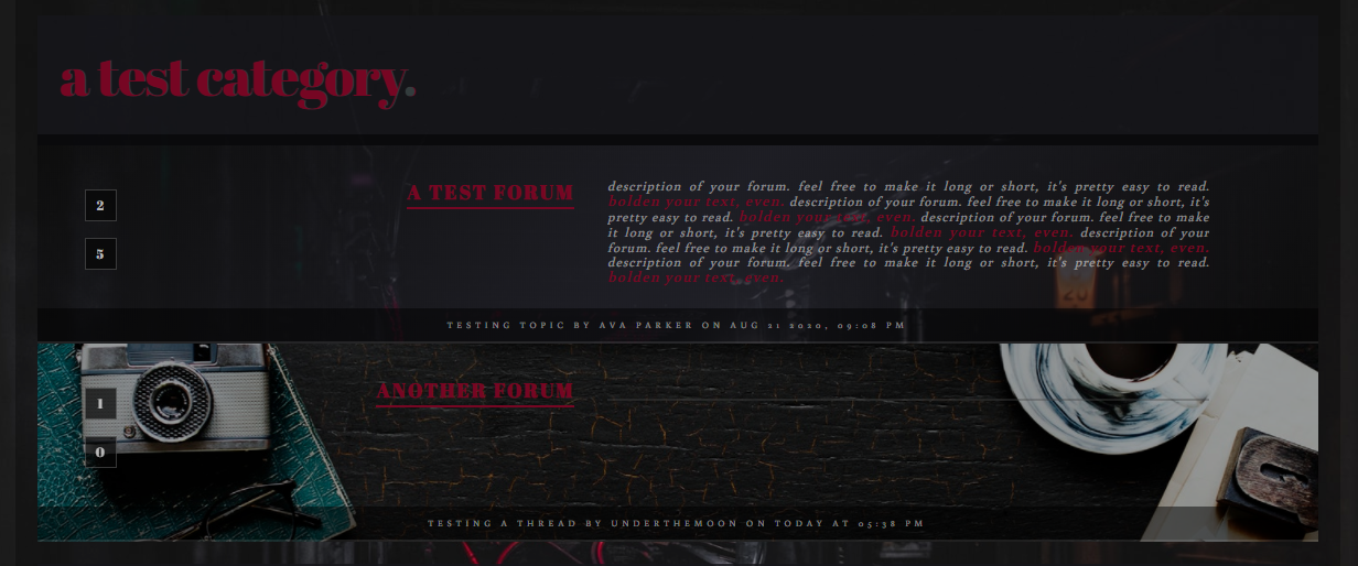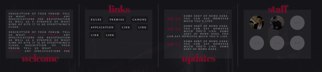 Fire in Bone is a skin made for Jcink forums only. It comes as is, but you need installation or any assistance, please contact me on my website ( http://elizacodes.tumblr.com ) or my Discord which is also listed there. Please note that there are guides for easy installation and that you should first read them before reaching out for assistance.