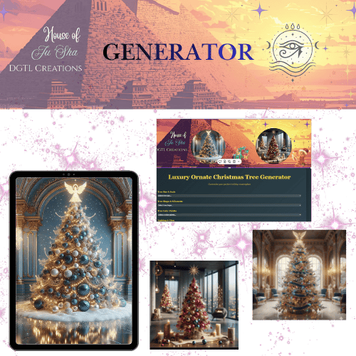 Customize your masterpiece with interchangeable color palettes, lighting styles, toppers, and decorative accents. Whether you’re crafting opulent wrapping paper, luxury holiday cards, planner covers, or digital art for your shop, this generator gives you endless creative combinations.