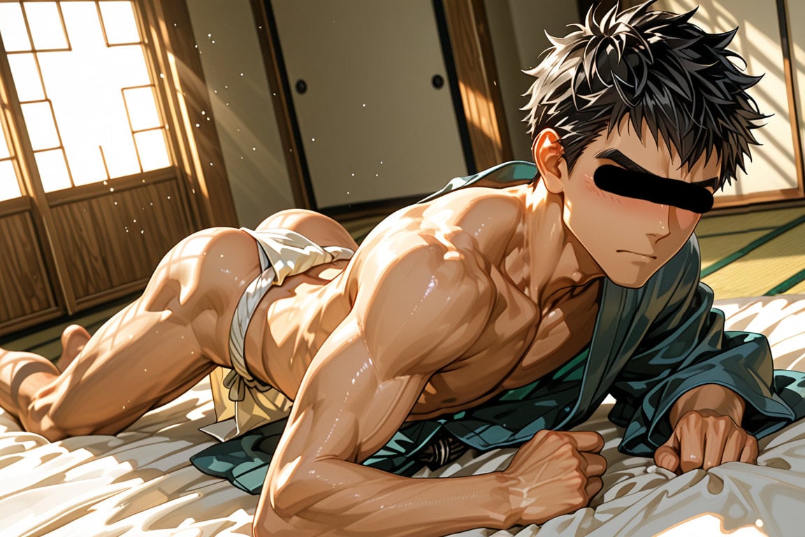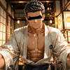 日本の正月をテーマに、着物を着用している男性を、キャラクターごとにお任せ作成しました。男らしいキャラクターの魅力を思い切って表現しました。