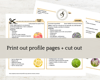 1) Print off the profile card pages onto cardstock using a color printer