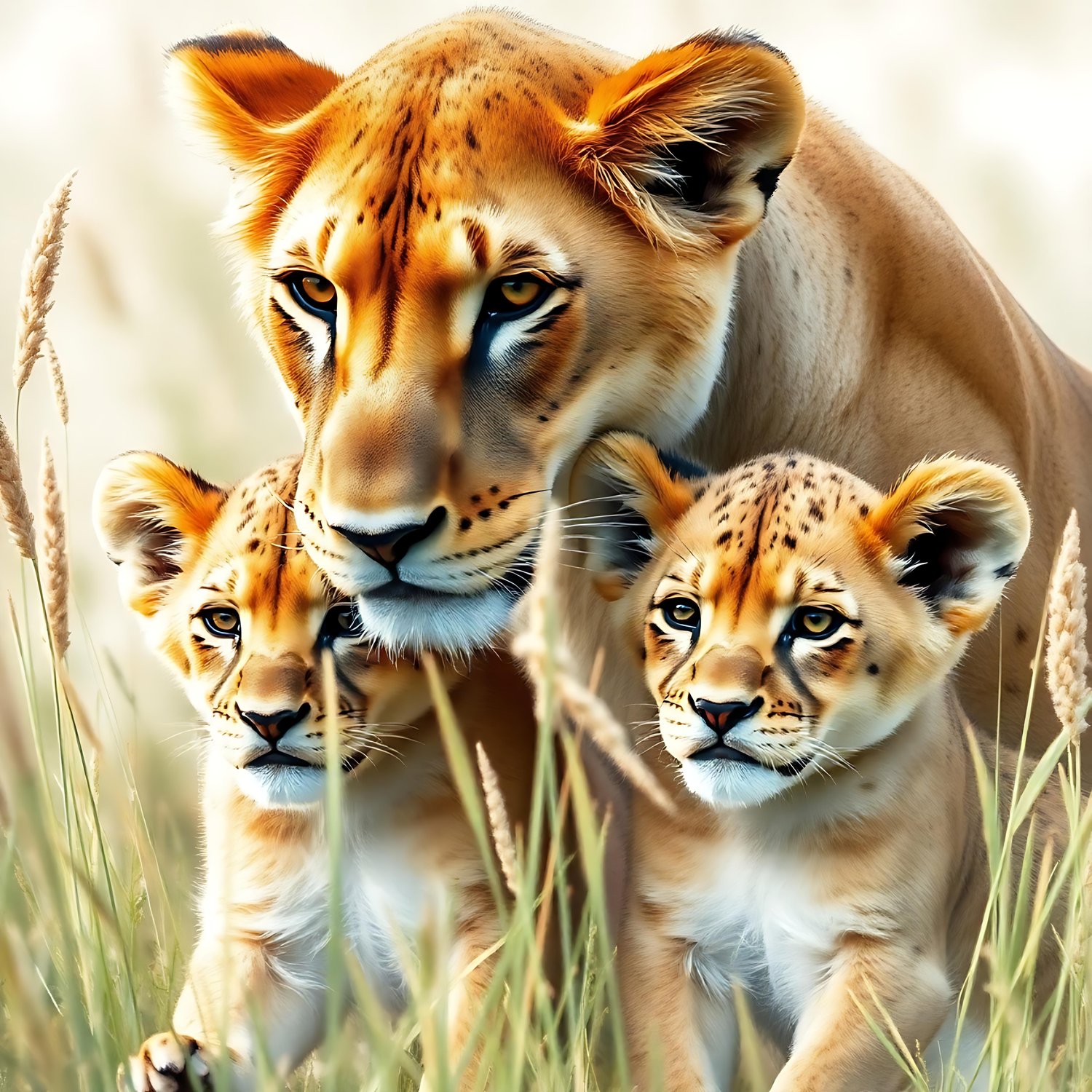 This beautiful photograph captured a lioness with her cubs. The photograph will be printed on Hahnemühle gallery fine print paper. The size is A2 (420mm x 594mm)