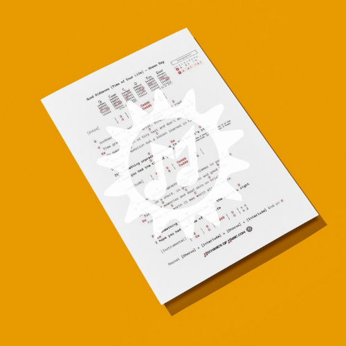 Learn to play "Time of Your Life" by Green Day with this easy-to-follow song chart in the key of G! Perfect for guitar players of all levels, this chart includes chords, lyrics, and strumming guidance to help you master this iconic song. Download now and start playing!