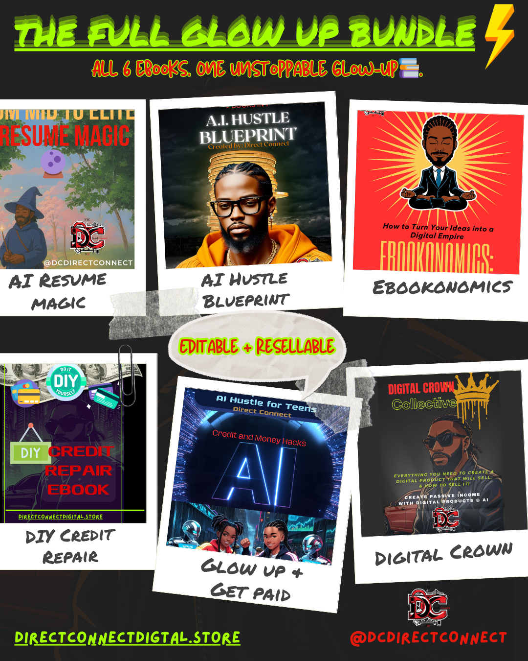 This bundle gives you the exact tools to build your brand, fix your credit, upgrade your resume, create sellable content, and launch a digital hustle β even if youβre starting from scratch.