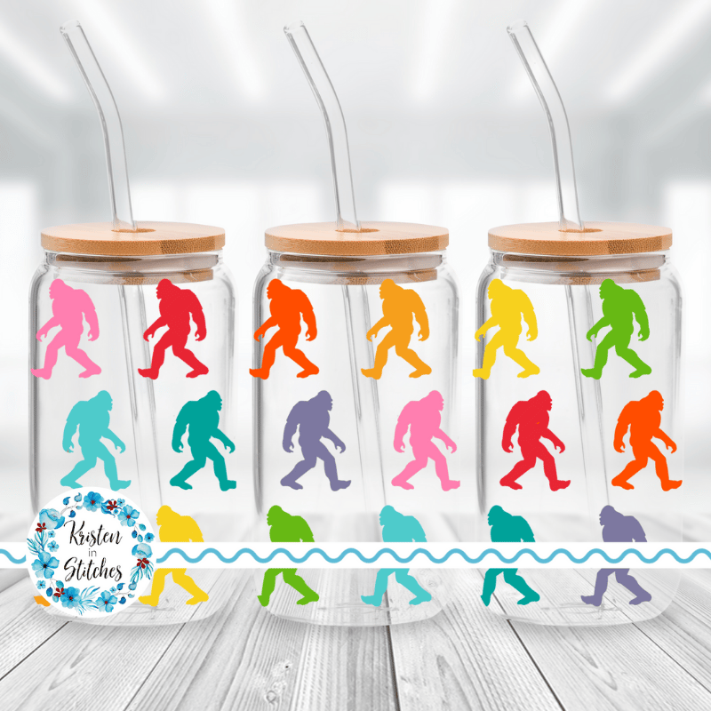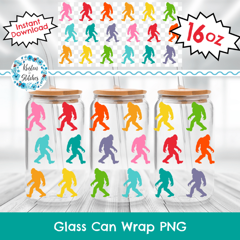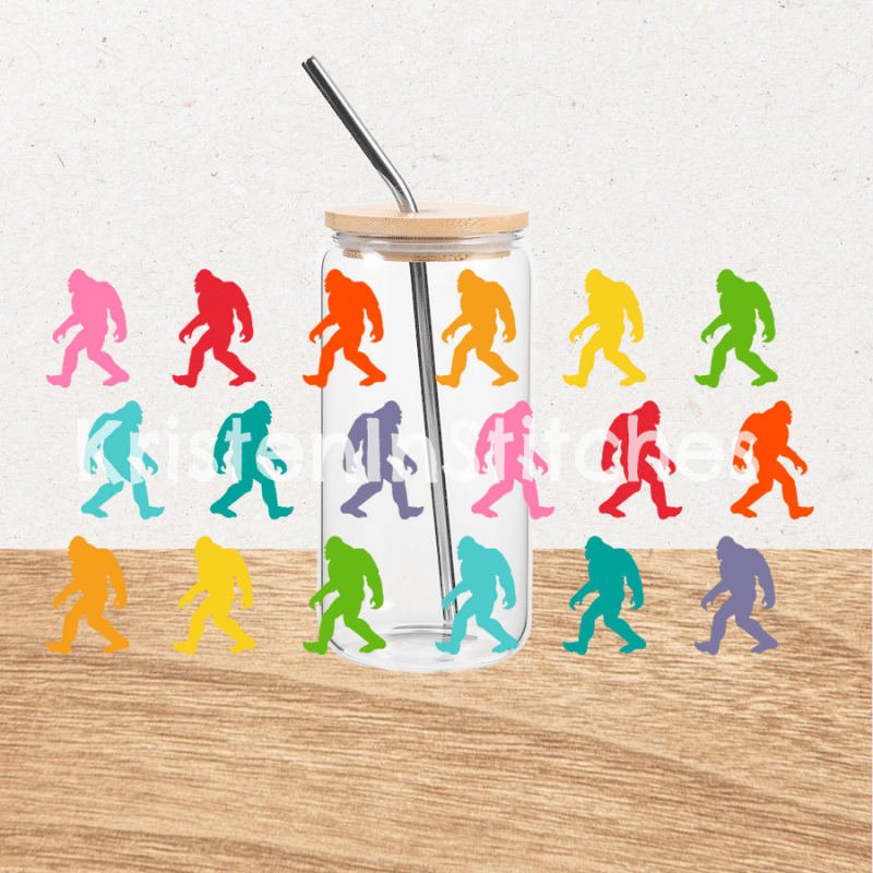 Bigfoot Glass Can Wrap Transparent Cup PNG, Colorful Sasquatch