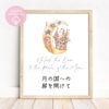 Add a touch of magic to your nursery with this captivating crescent moon wall art. The watercolor illustration of a fantasy castle on a crescent moon is enhanced with mystical and inspirational quotes in both Japanese and English. This beautiful piece of wall art is perfect for creating a dreamy and enchanting atmosphere in your little girl's room, nursery, or kids' bedroom.