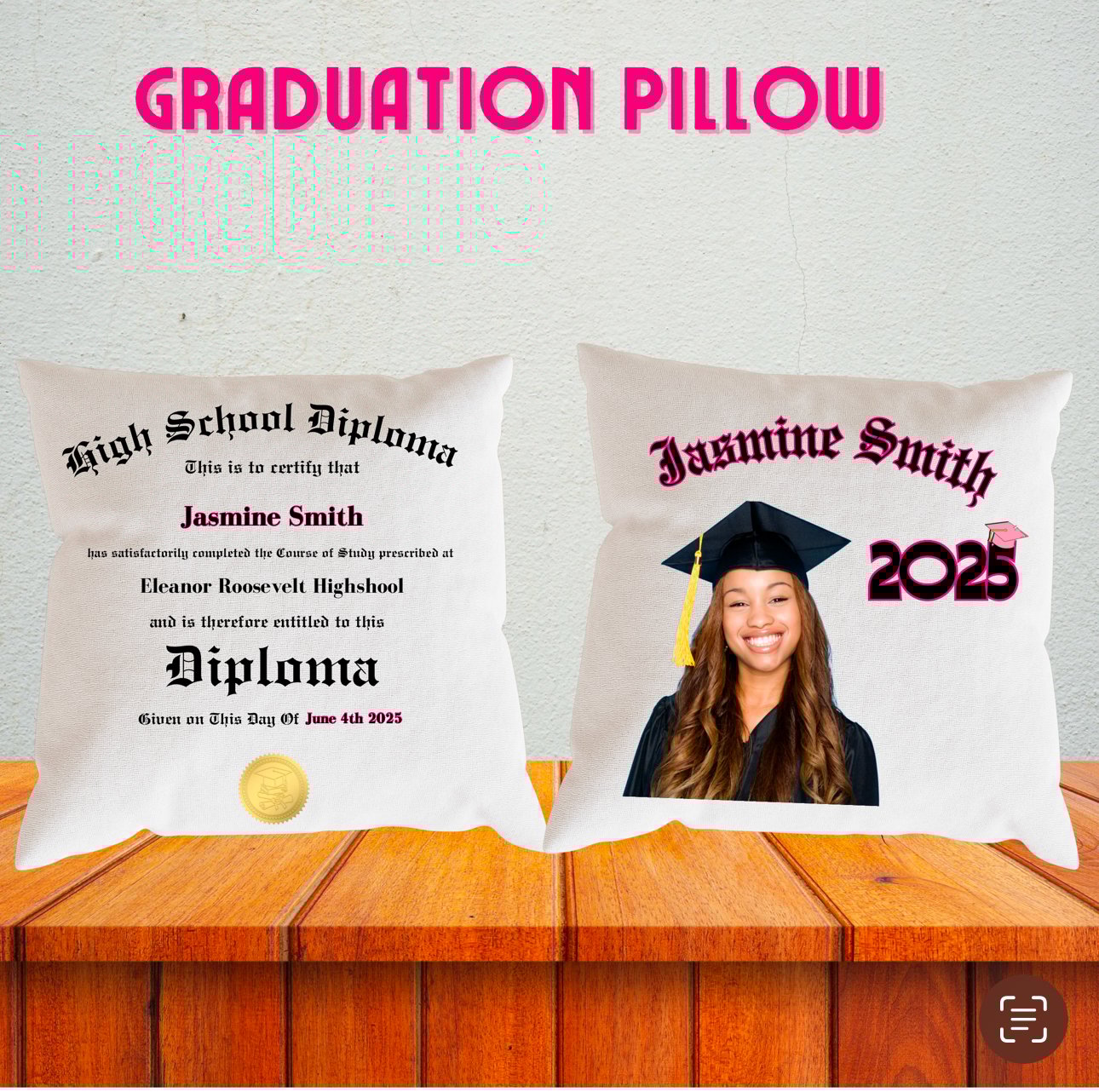 Celebrate your grad’s achievement with a personalized keepsake that lasts a lifetime. Our custom graduation pillows are perfect for grads, parents, and family members who want to remember this special day in a unique and heartfelt way. Designed for maximum impact, each pillow comes with designs on both sides, allowing you to showcase photos, names, school colors, or a special message.