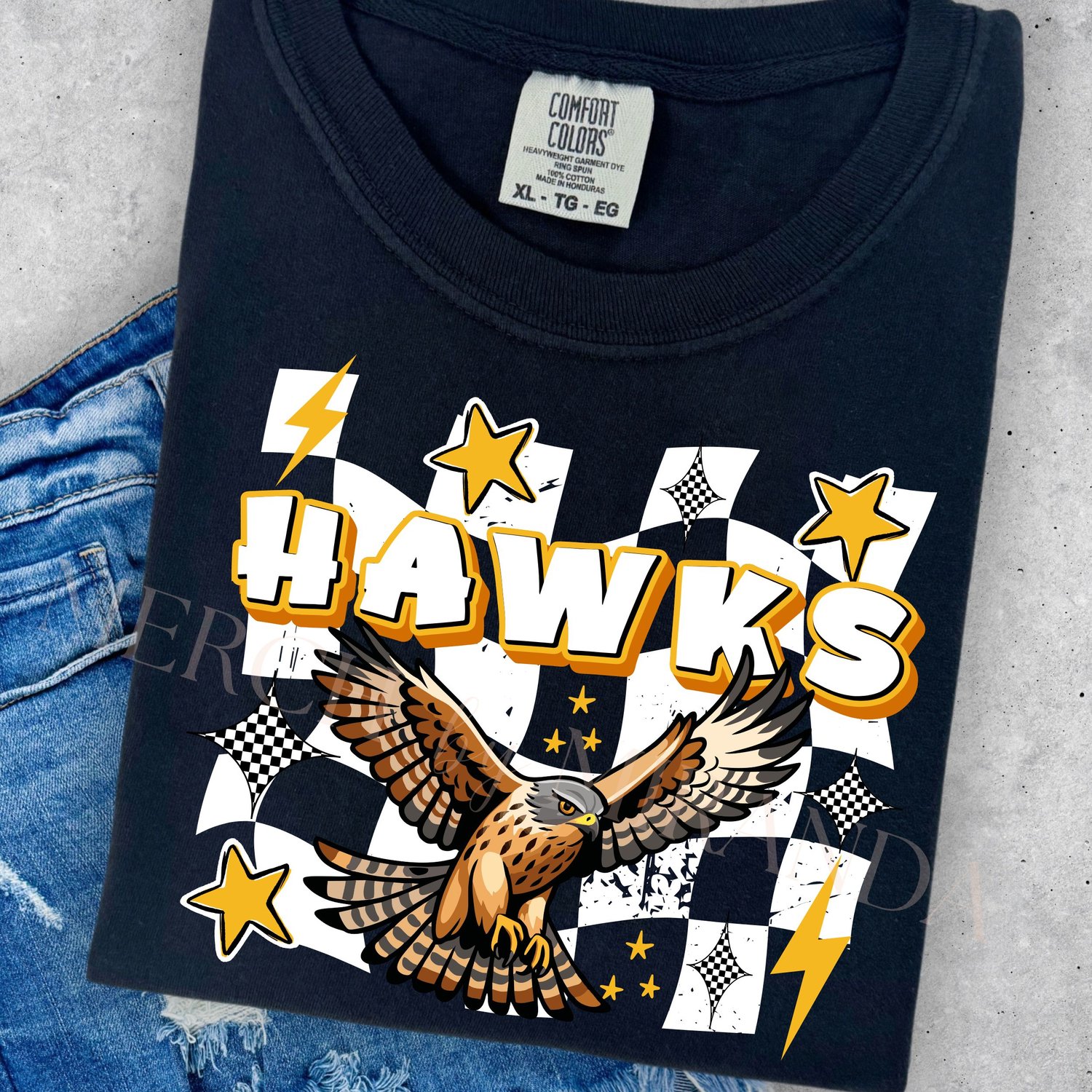 Hawks - Checkered - Comic Style - Mascot - Digital Download