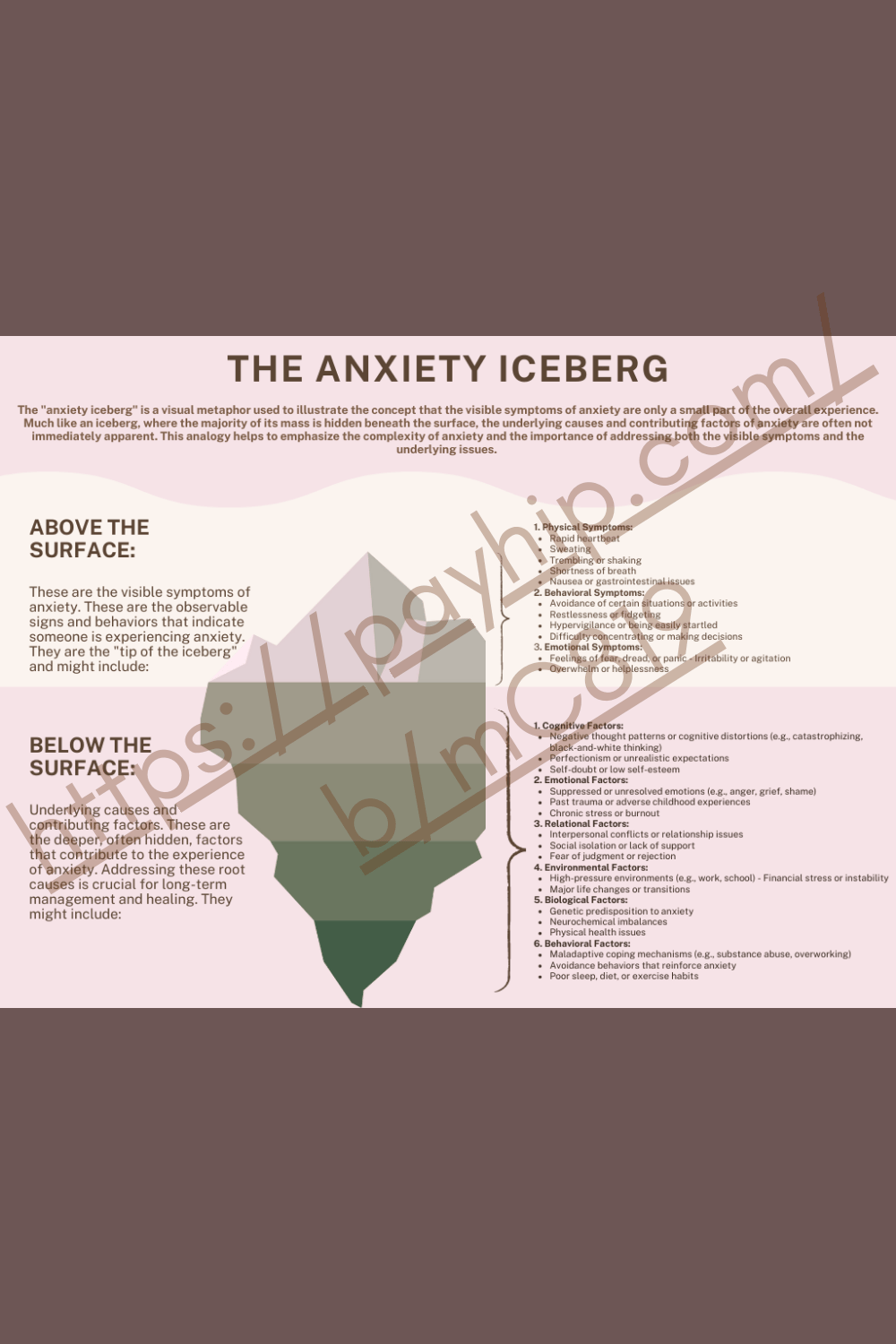 Anxiety Iceberg Worksheet: Therapy Tools, Understanding Anxiety (Digital Download)