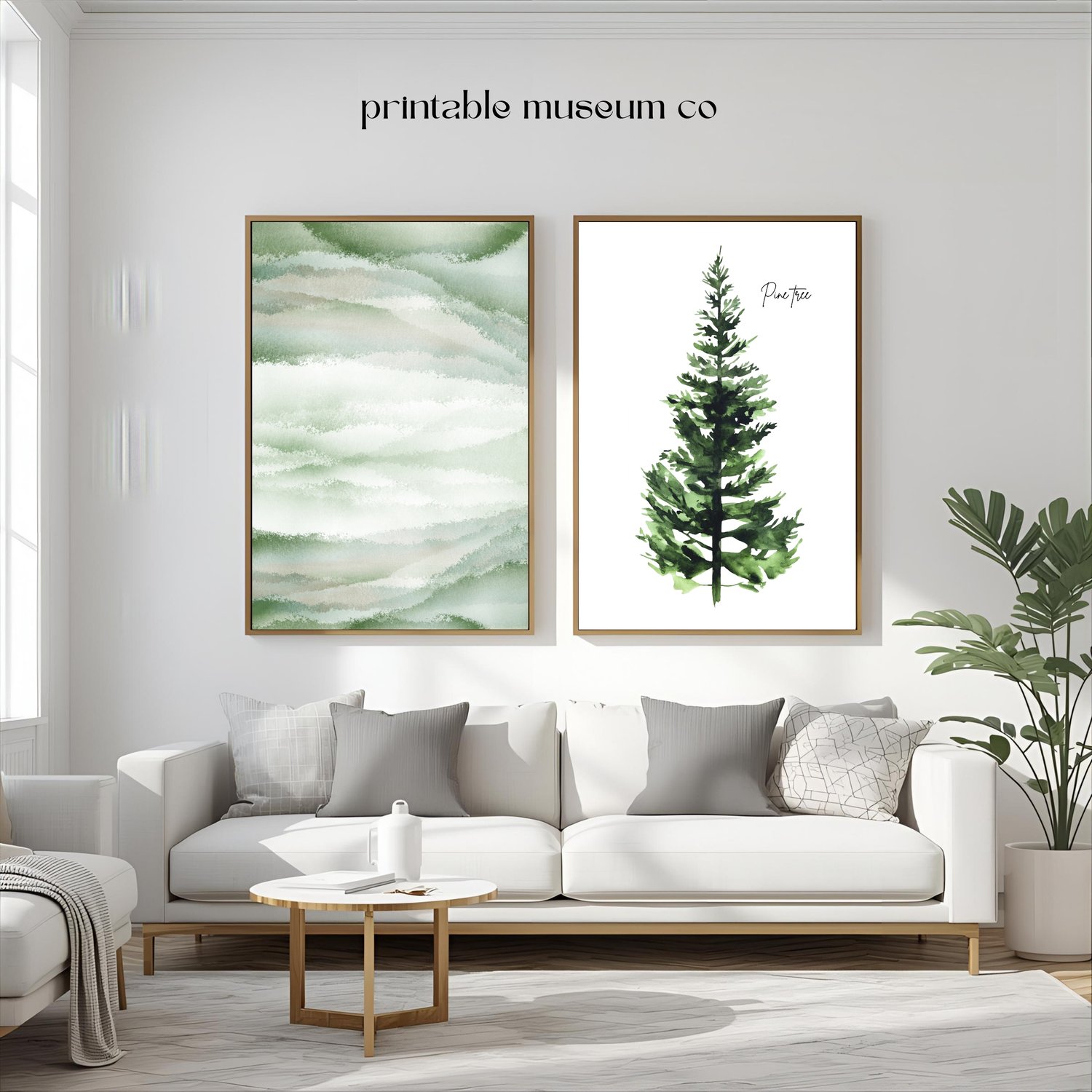 Green Watercolor Abstract & Pine Tree Printable Wall Art Set | Minimalist Nature Decor