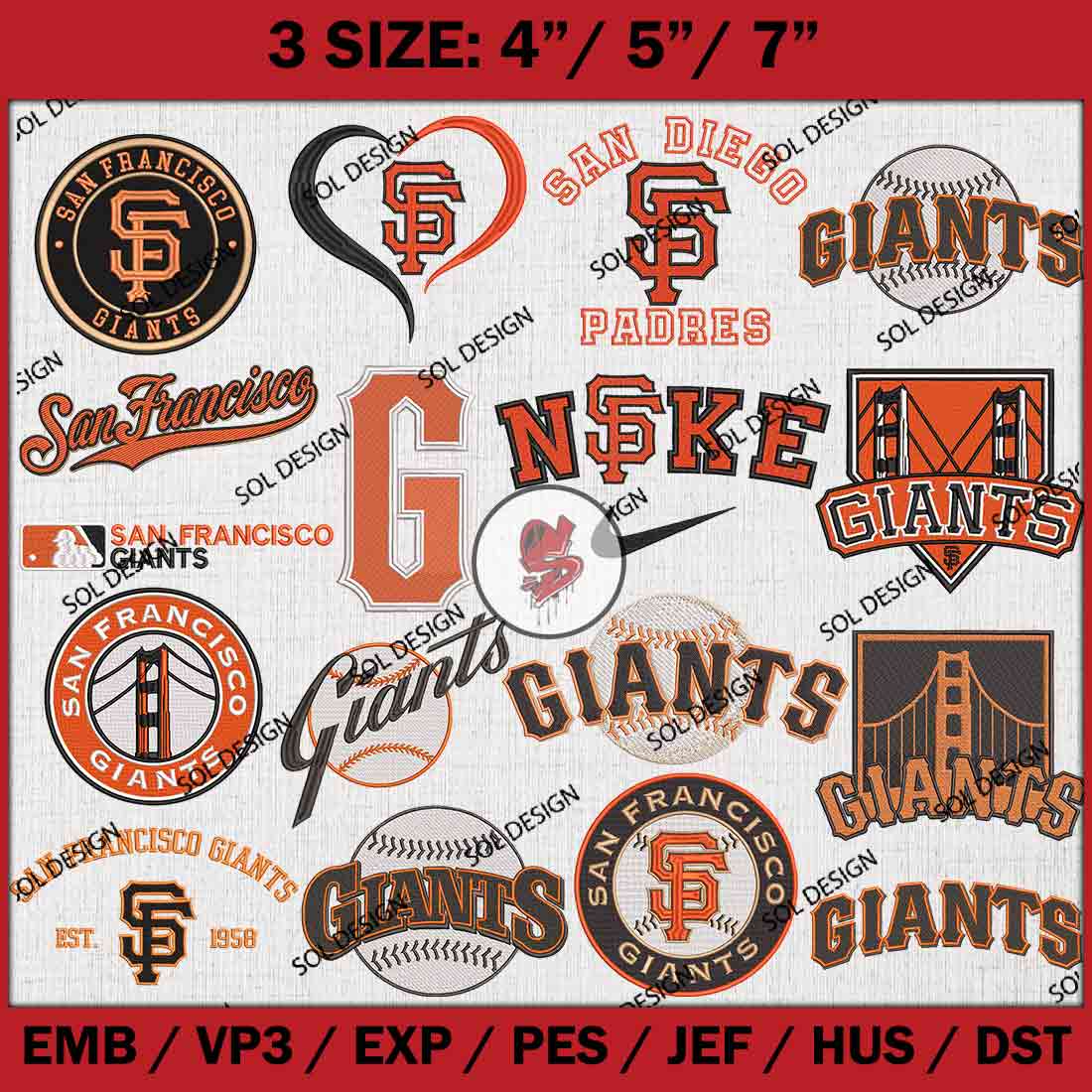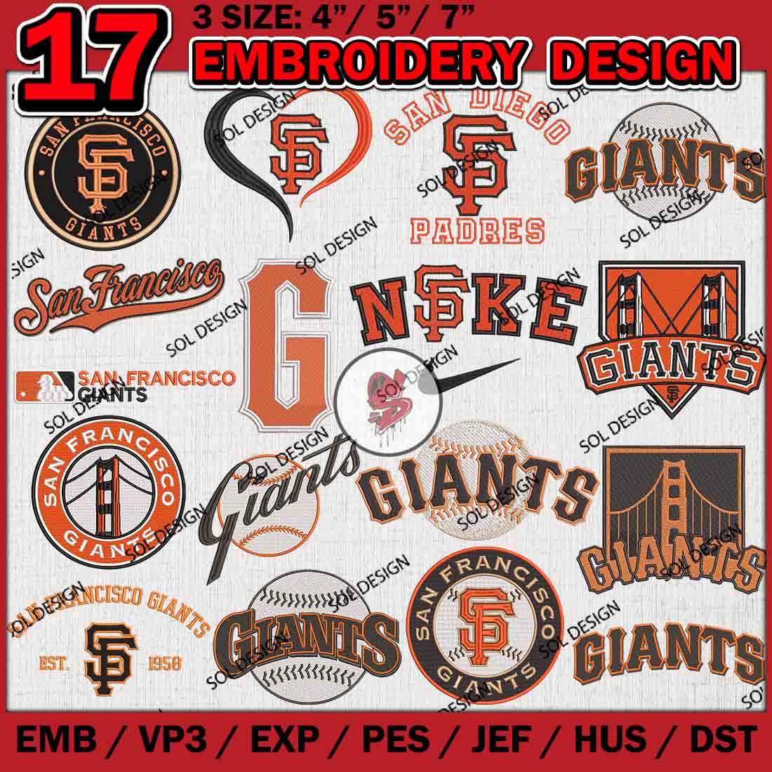 17 San Francisco Giants MLB Team Bundle Embroidery Designs, MLB San Francisco Giants Embroidery Designs, MLB Giants Machine embroidery Designs Bundle, Baseball Team Bundle, Digital Download