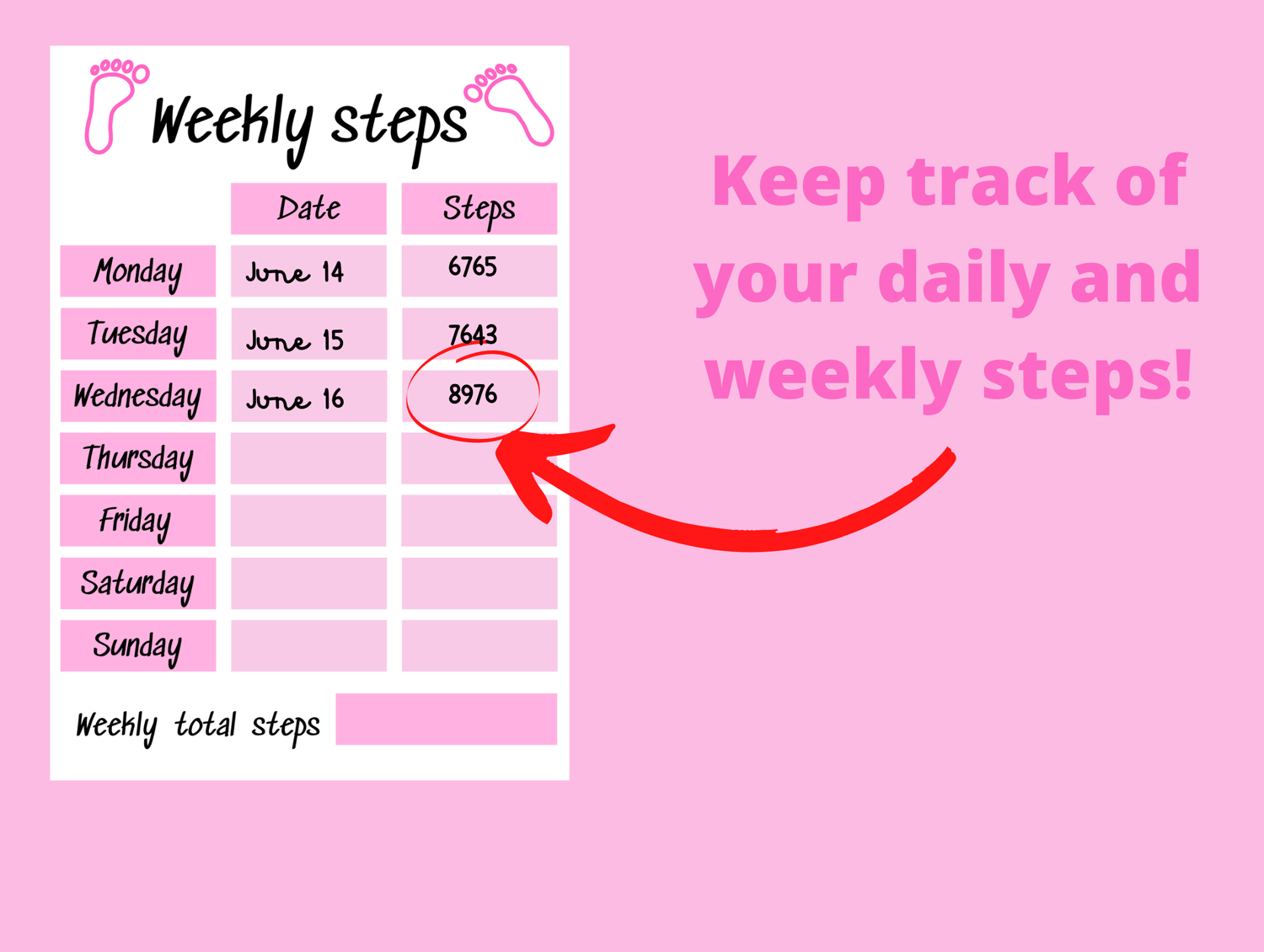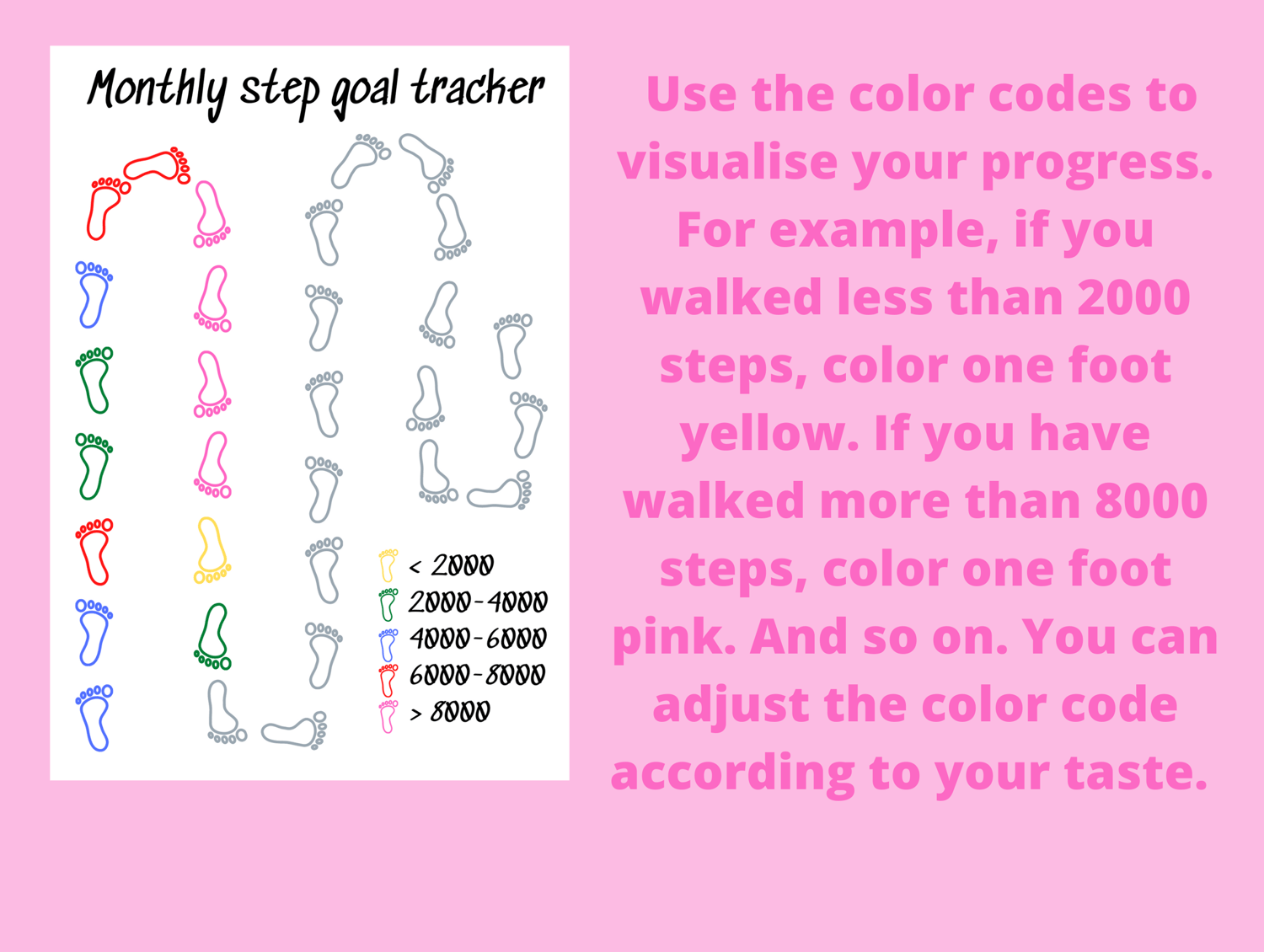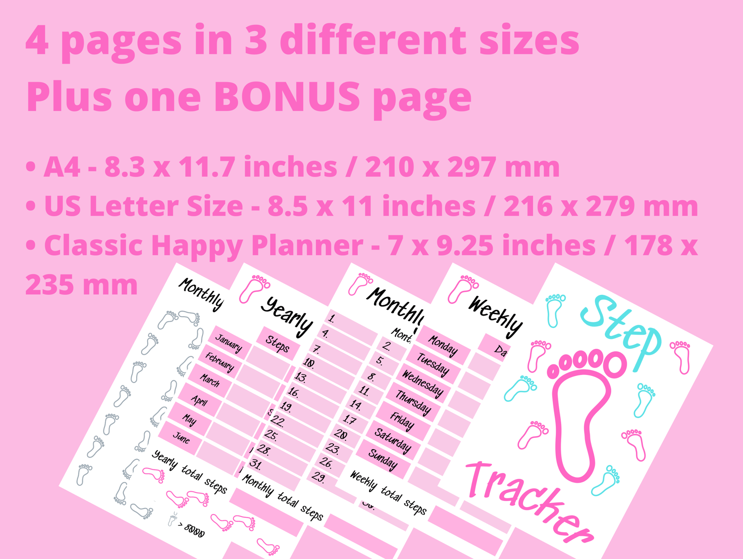 Daily, Weekly, Monthly and Yearly Step Tracker | Downloadable and Printable Walking Journal | Digital Download Weekly Fitness Planner | Pink