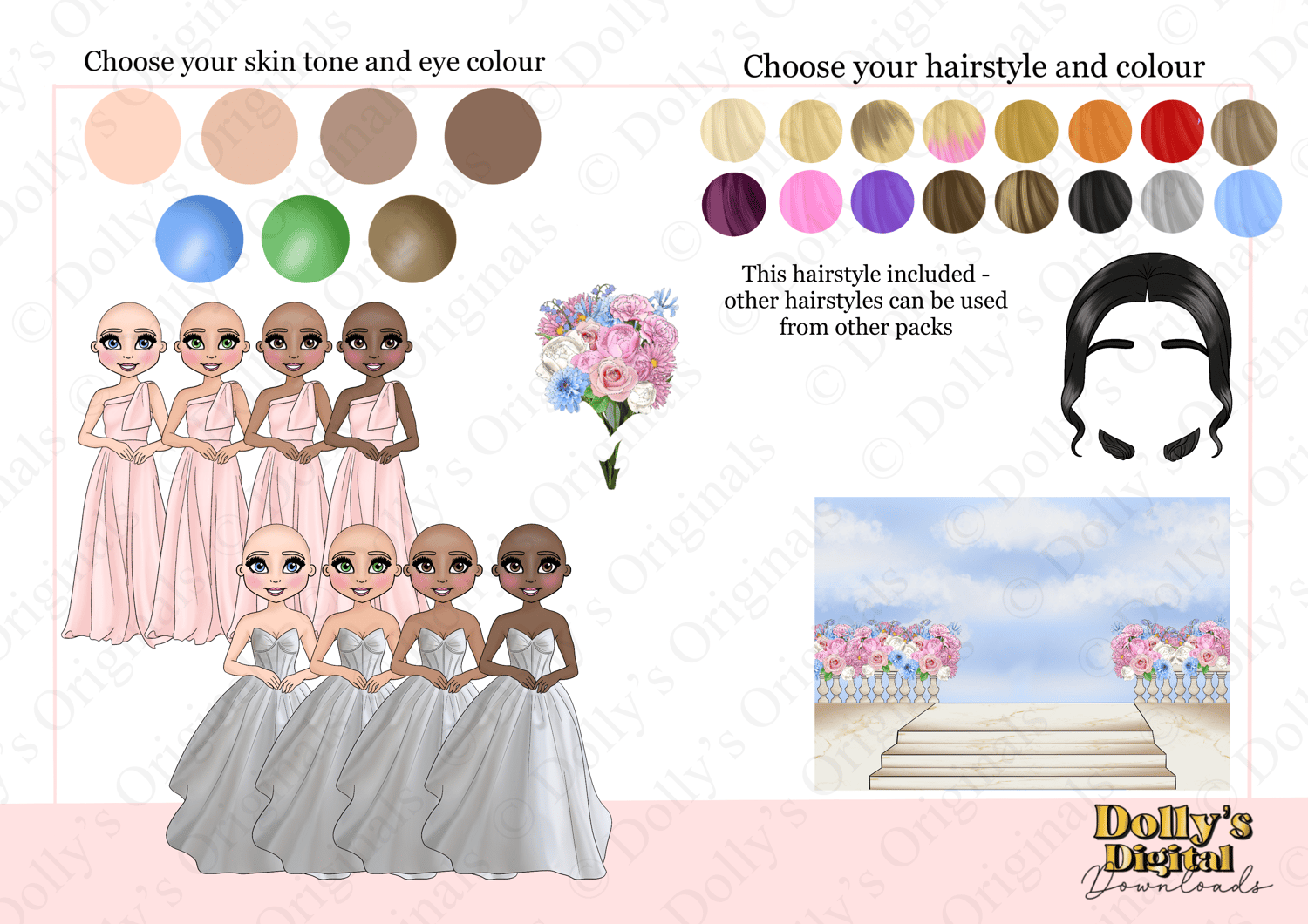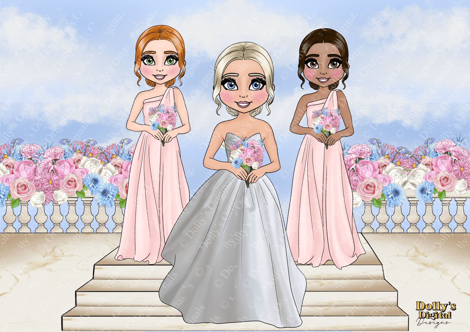 Instant digital download of our Spring Bride and Bridesmaid Dolly Character Bundle PNG (46 PNG’s)
