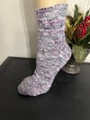 Techniques: Knit in the round, increases, decreases, yarn overs, heel flap, gusset, toe up.