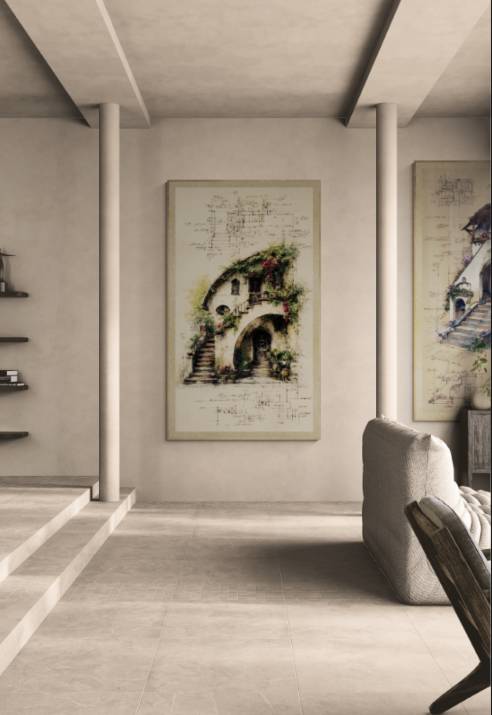 Sepia Thornveil Rose — Tangled Cottages | Architectural Fantasy Art Print Set | 20 JPG Files | 300 DPI | 2700×4800 px | Printable Wall Art