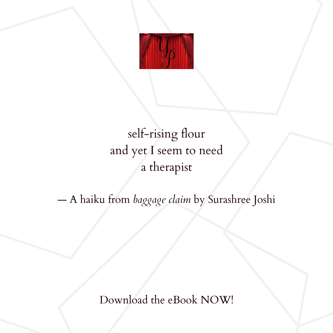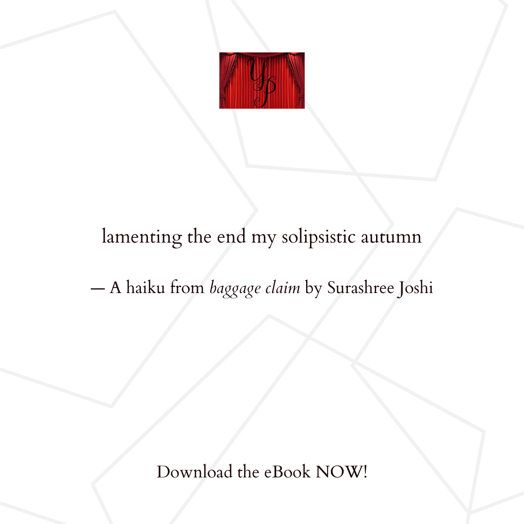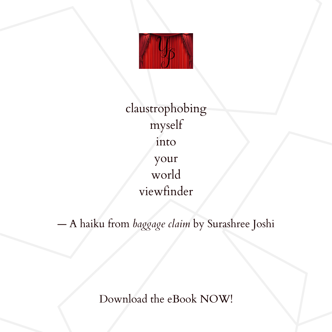 “Grounded in existential thought and exploration, Surashree Joshi’s work surprises by incorporating references to the mundane within many of her life-altering insights. Though one’s first instinct might be to chuckle, it is but a beat before the reader stills into silence to consider the ways in which human nature undermines a philosophical and/or spiritual understanding of the cosmos, perhaps even God. In baring her illusions before the world, Joshi inspires the reader to reflect on her own, resulting in a shifting of course or a simple shake of the head in the face of humankind’s temporality. If there were only one collection I could choose to read this year, baggage claim would be it.”