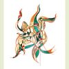 This abstract printable wall art depicts two women performing a scarf dance. I had just watched an interesting program featuring dances with scarfs (scarves) at about the same period I was taking an interest in stained glass – so I decided to combine both areas in this image.