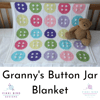 This blanket is knitted in a soft machine washable aran weight yarn, and colour substitutions can easily be made to fit your preferences; the blanket features seven different colours of button.