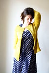 A wide band of decorative stitching edges the cuffs and lower hem, and a clean folded hem finishes the front. I-cord bind off adds a pretty, tailored finish.
