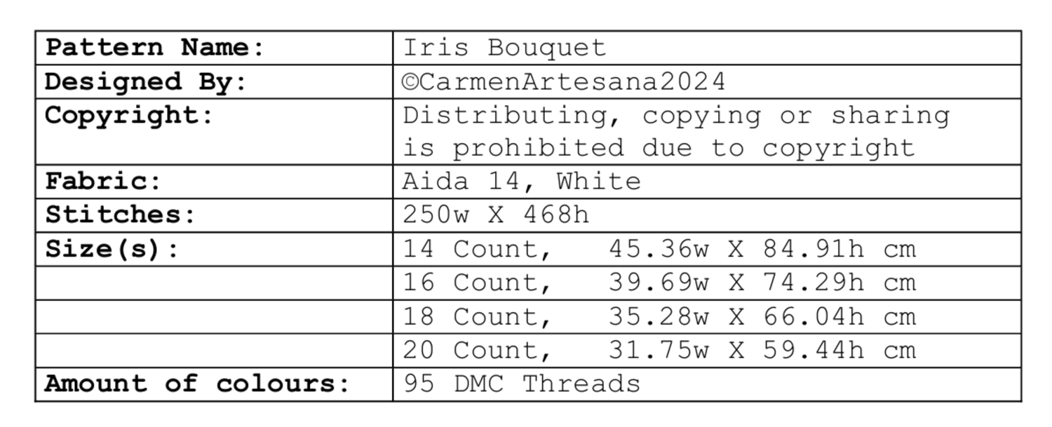 Iris Bouquet, PDF cross stitch pattern, DMC Threads