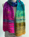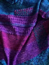 Shape: Rectangular like The Sharon Show to keep things simple during a pandemic. It will already be familiar to you. The Scarf begins life the same width as the shawl but then decreases so you have pretty flared ends, shown in pic at bottom. It uses about 1200 yards of yarn.