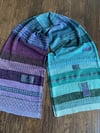 This was designed in an Asylum advent mini skein kit of 25 skeins. It was a gradient and based on the colors in the magenta/blue photo with Sharon and quickly sold out.