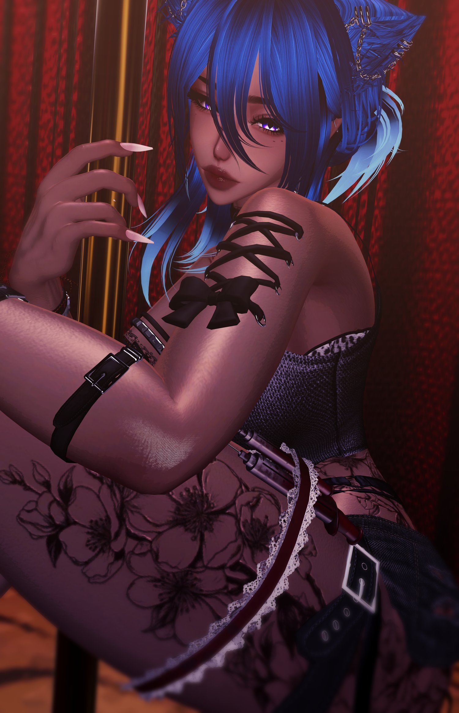 Arm acc L, Arm acc L Ribon, Arm acc R, Arm acc R chain, Earring, Leg band, Leg syringe, Harness, Toe nail,
