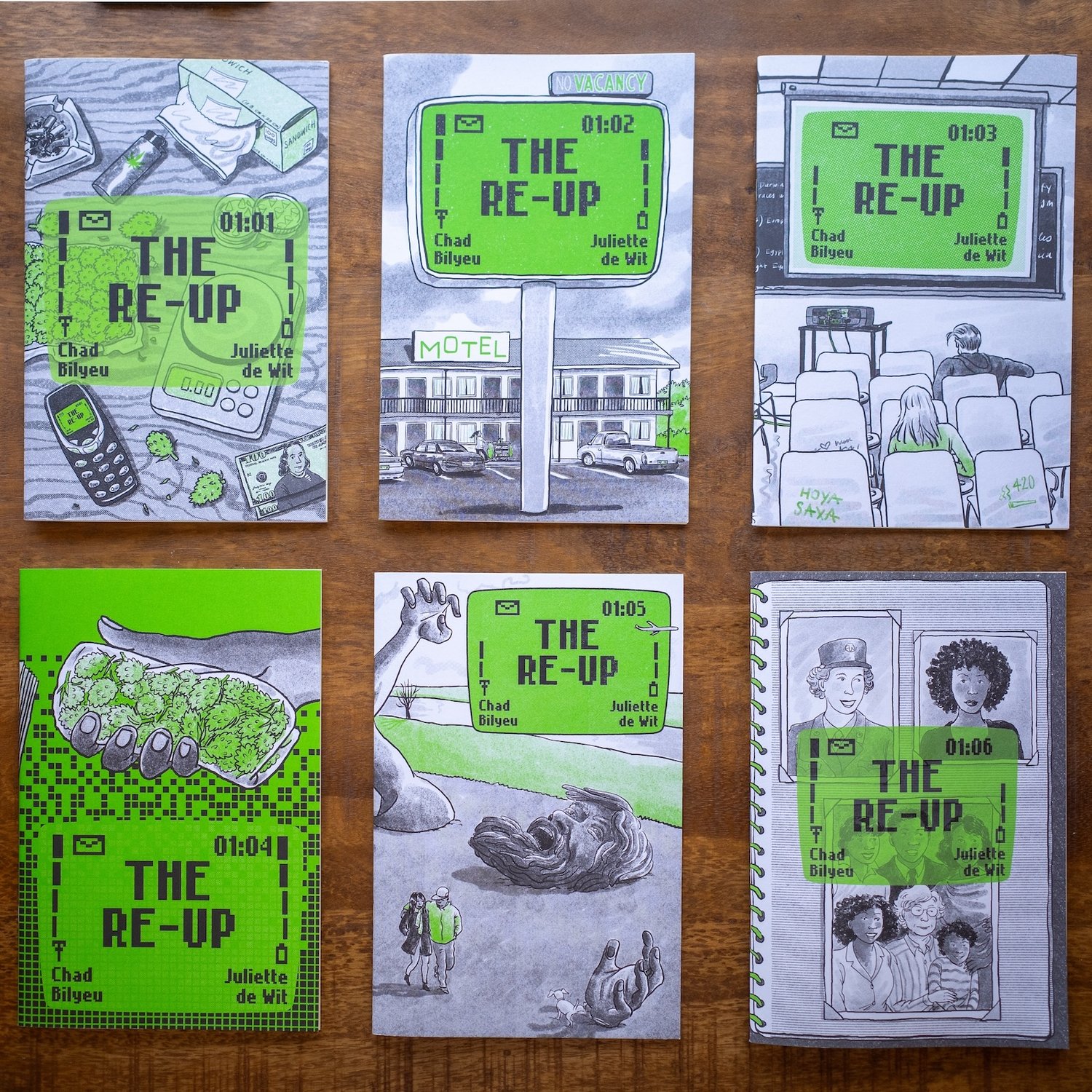 "Some of my favorite contemporary comics as of late. Much more than just comics about weed, Chad's been putting his heart and soul into these books. I thoroughly enjoy his writing. When you can take a topic like weed culture and/or hustling and create something as universally felt as what we've got here by digging deep into the extra personal, well, the same reasons why I enjoy Martin Scorsese's films or Wu-Tang Clan's music are the same reasons why I enjoy Chad & Juliette de Wit's The Re-Up – it ain't surface they're selling. This is a beautiful (and funny) story about a man's journey finding himself, navigating two (or three or four) different worlds, AND he just so happens to sell weed. Juliette's art complements Chad's words very well, too, bringing an almost whimsical element to these stories; I can't imagine Chad's world-building without her. They're an excellent team."