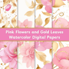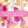 Pink Flowers and Gold Leaves Watercolor Digital Papers