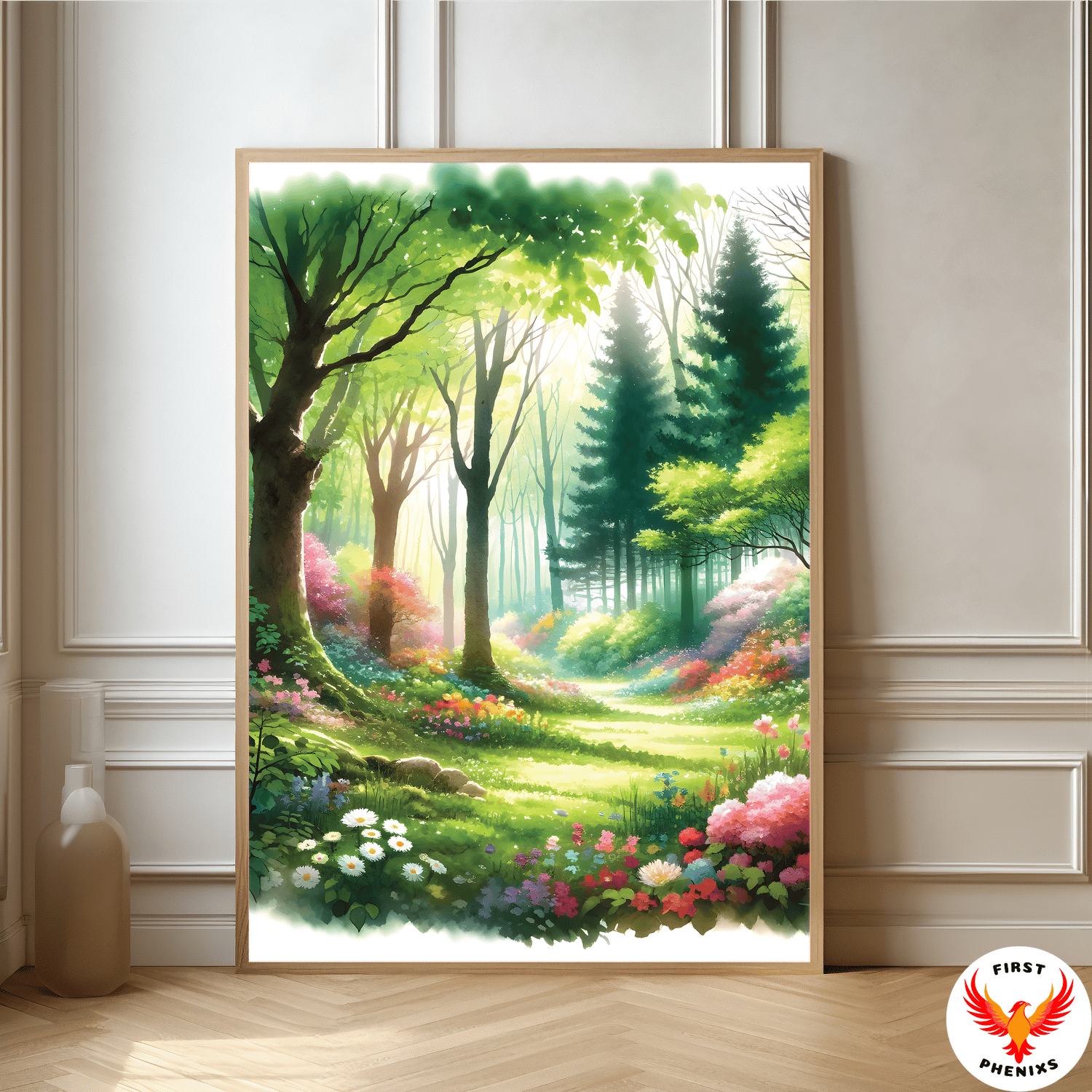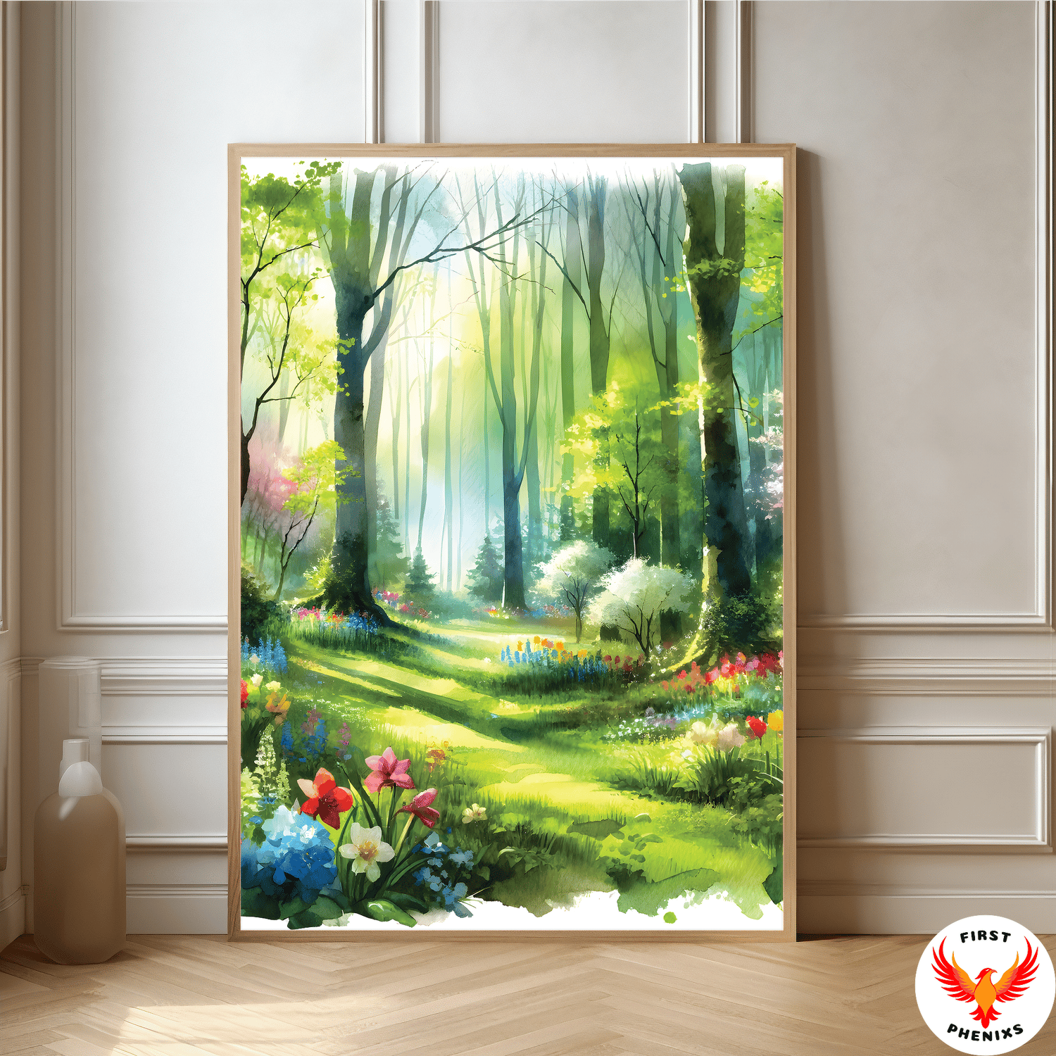 Enchanted Forest Watercolor, Spring Bloom Wall Art, Tranquil Woodland Decor, Nature Inspired Home, spring seasons wall poster