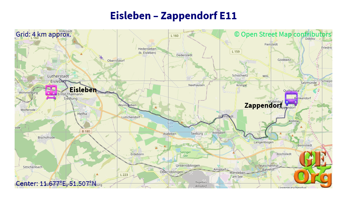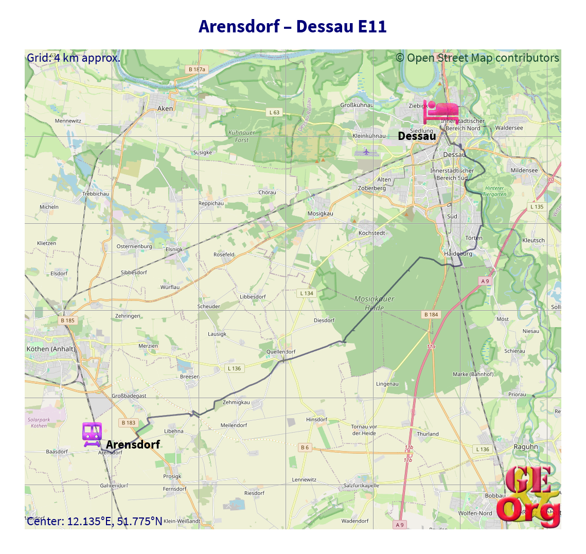 Wippra - Eisleben - Zappendorf - Gutenberg - Kösseln (alt. Gutenberg - Weißandt-Gölzau) - Arensdorf - Dessau - Griebo - Raben - Rädigke - Bad Belzig - Golzow - Ferch - Berlin-Schlachtensee - Berlin-Tiergarten