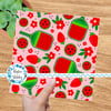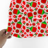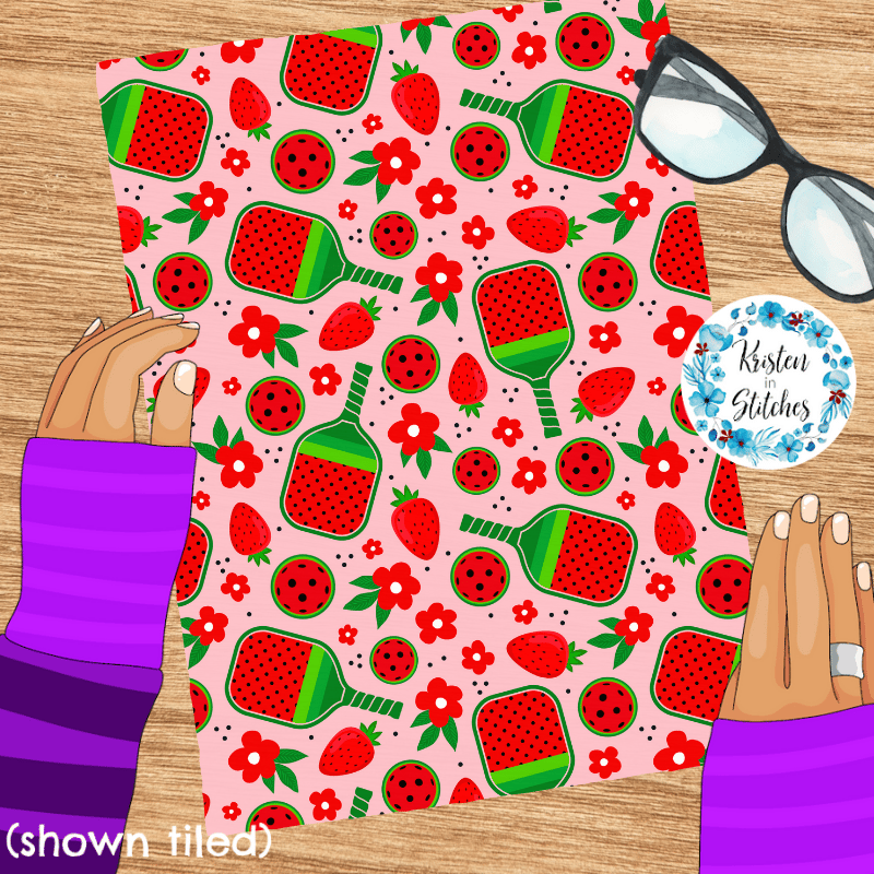 Red Strawberry Pickleball Seamless Pattern, Paddles and Balls, Pink