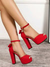 Women's Fashion High Heel Sandals With Buckle Design Bowknot Red, New 2025 Spring/Summer, 12.5CM Chunky Heel, Elegant Sexy Party Plus Size Round Toe Platform Waterproof Peep Toe Versatile Sandals